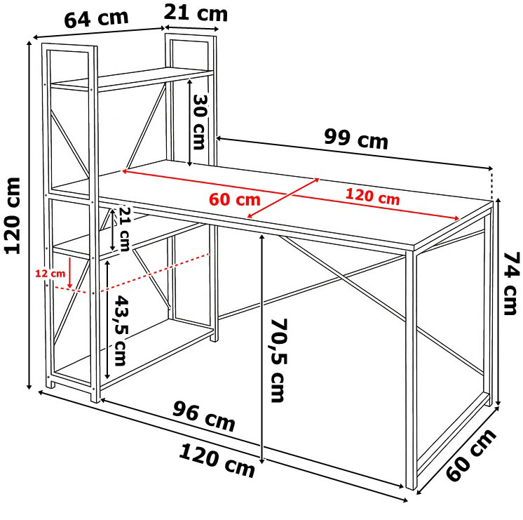 Wysoka jakość i staranne wykonanie: Konstrukcja wykonana z mocnego metalu, półki z wytrzymałych, drewnianych płyt laminowanych. Wszystko to gwarantuje jakość, stabilność, trwałość i nośność. Wygodna przestrzeń- regał z półkami na potrzebne książki czy stylowe ozdoby można zamontować po obu stronach biurka, w zależności od potrzeb. Praktyczne i piękne: nadstawka z półkami zapewnia odpowiednie miejsce dopracy czy rozrywki przy komputerze. Wzornictwo industrialne loft sprawia, że biurko Trosa jest stylowe i przyciąga wzrok. Wszechstronne zastosowanie: dzięki konstrukcji wielofunkcyjnej Trosa pasuje do wielu miejsc i stylów. Łatwy montaż: dzięki szczegółowej i obrazkowej instrukcji każdy może łatwo, samodzielnie złożyć biurko.