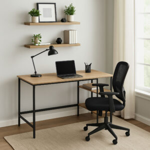 Biurko Falun Modern Oak to połączenie stylu industrialnego i funkcjonalności, idealne do pracy, nauki i grania. Posiada dwie praktyczne półki na dodatkowe przechowywanie. Metalowa konstrukcja i blat MDF zapewniają trwałość i stabilność. To estetyczne i praktyczne rozwiązanie do Twojego wnętrza.