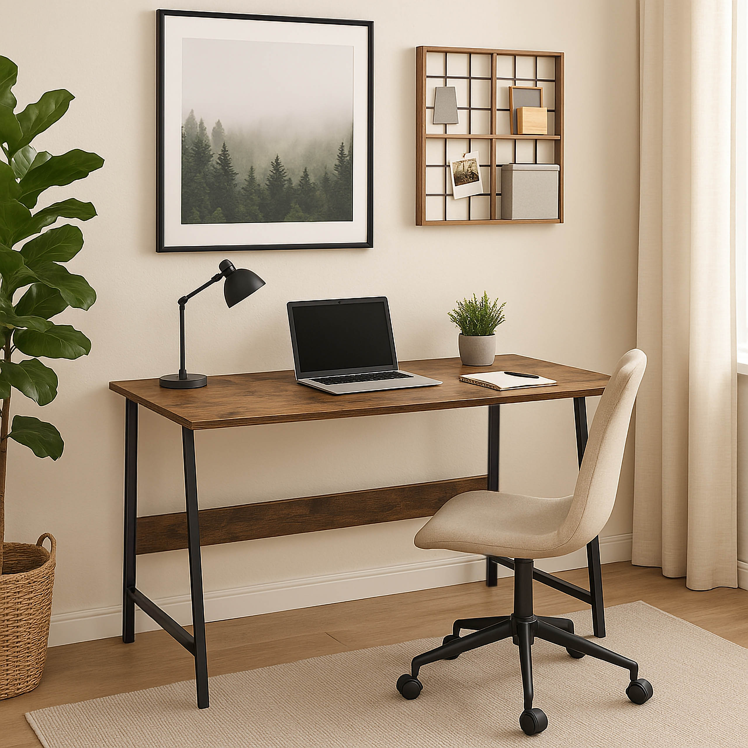 Materiał blatu i poprzecznej belki: płyta laminowana w odcieniu postarzanego dębu