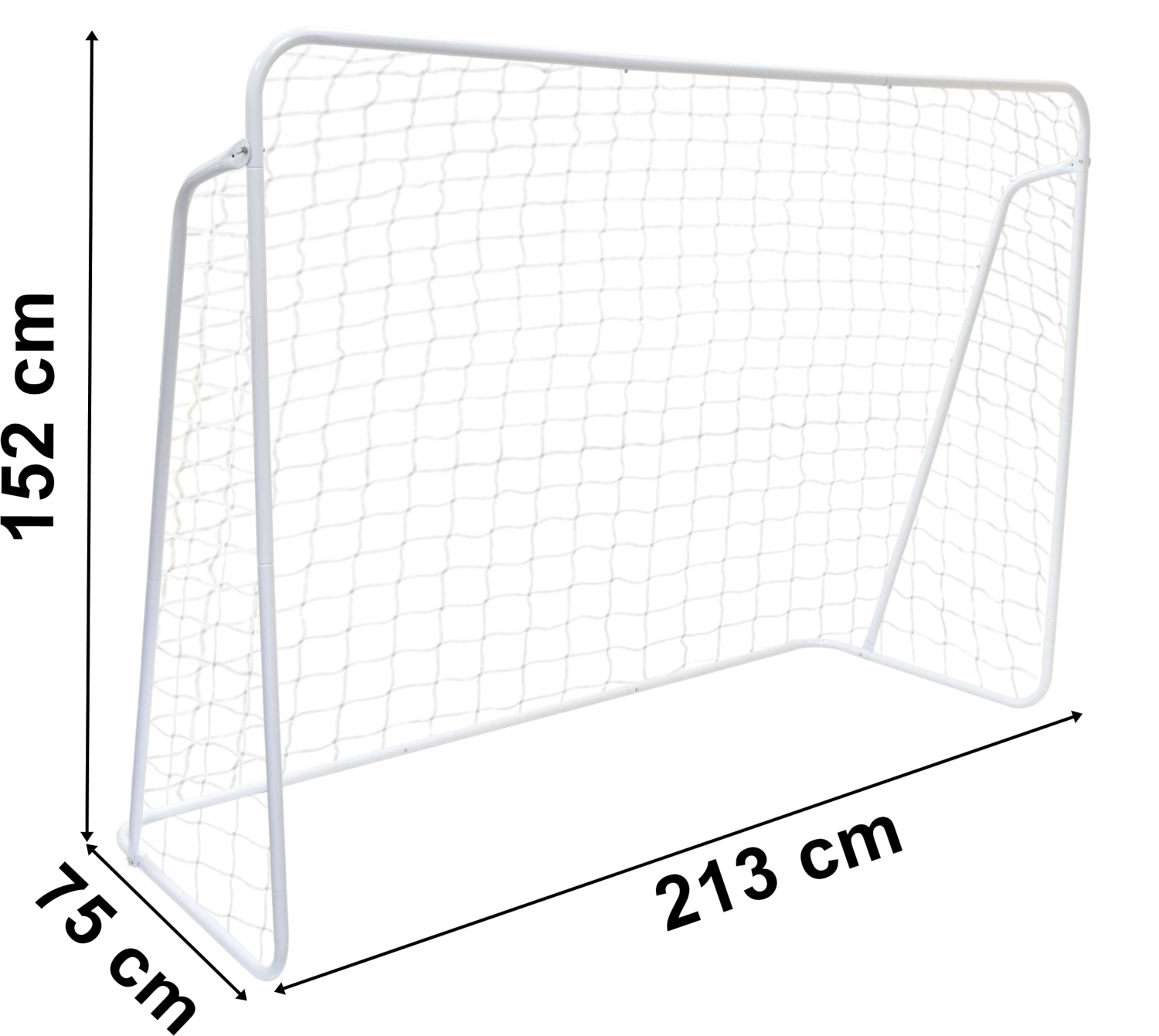 Zestaw zawiera: metalowe profile, śruby z motylkiem, instrukcję w języku polskim, siatkę piłkarską, szpilki mocujące do podłoża.