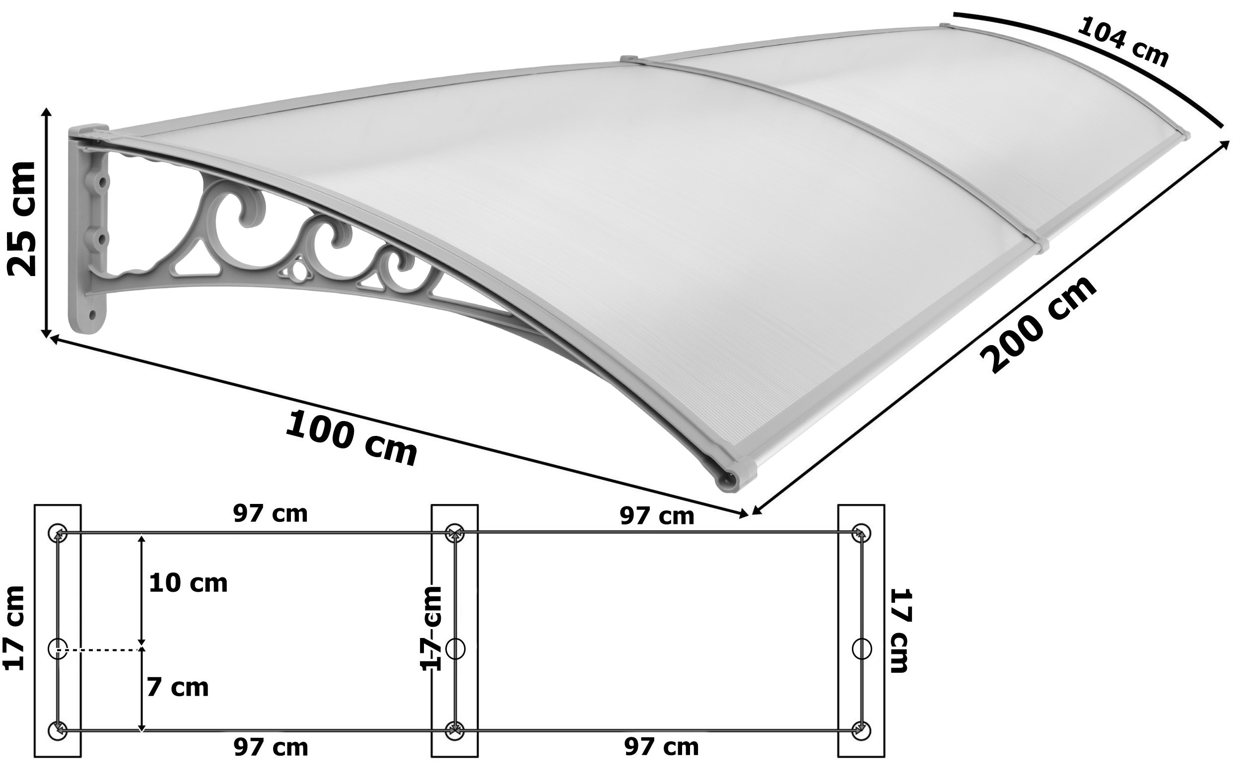 ☔️Daszek plastikowy nad drzwi Dako Duo 100×200 – Praktyczna osłona do domu i biura☔️