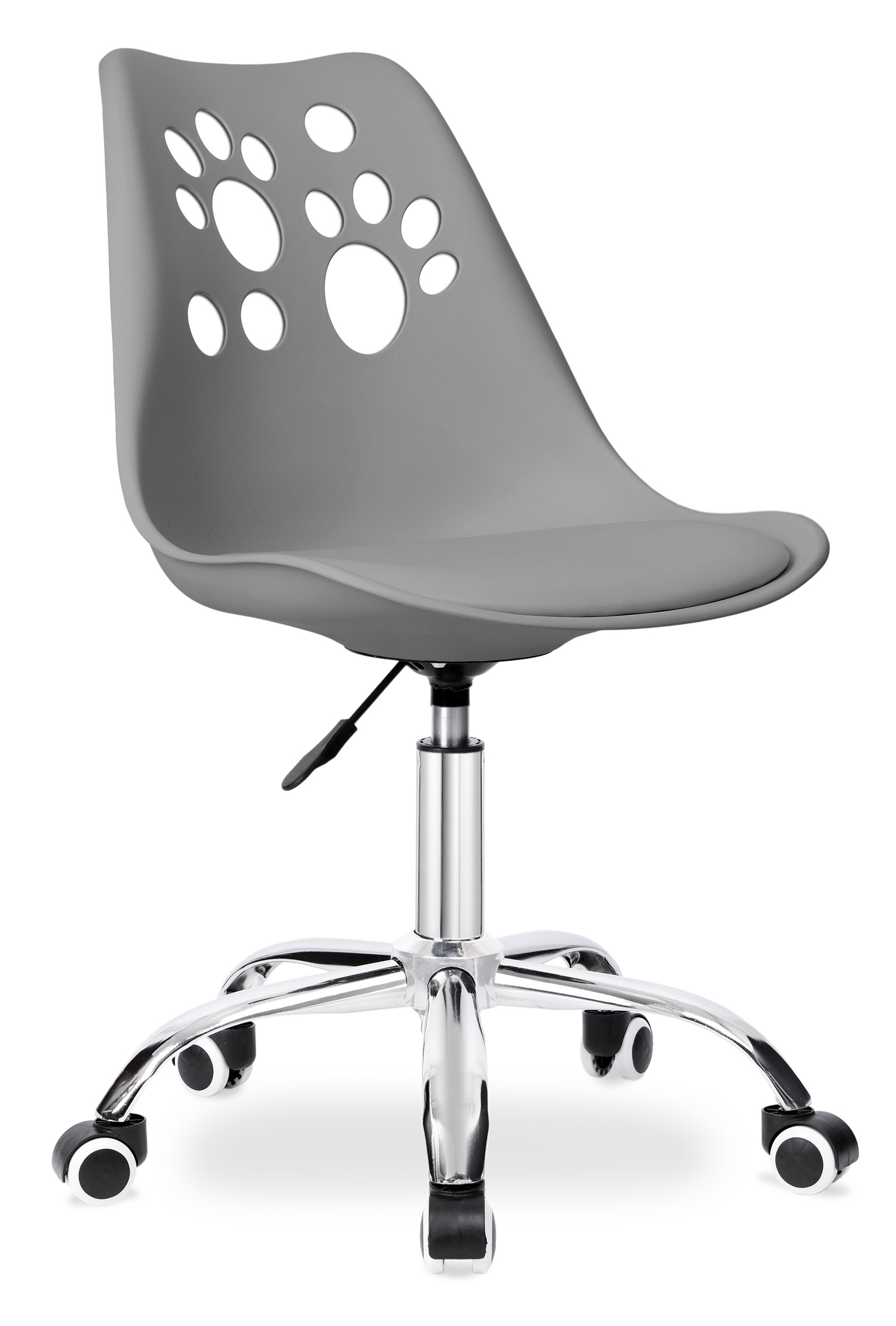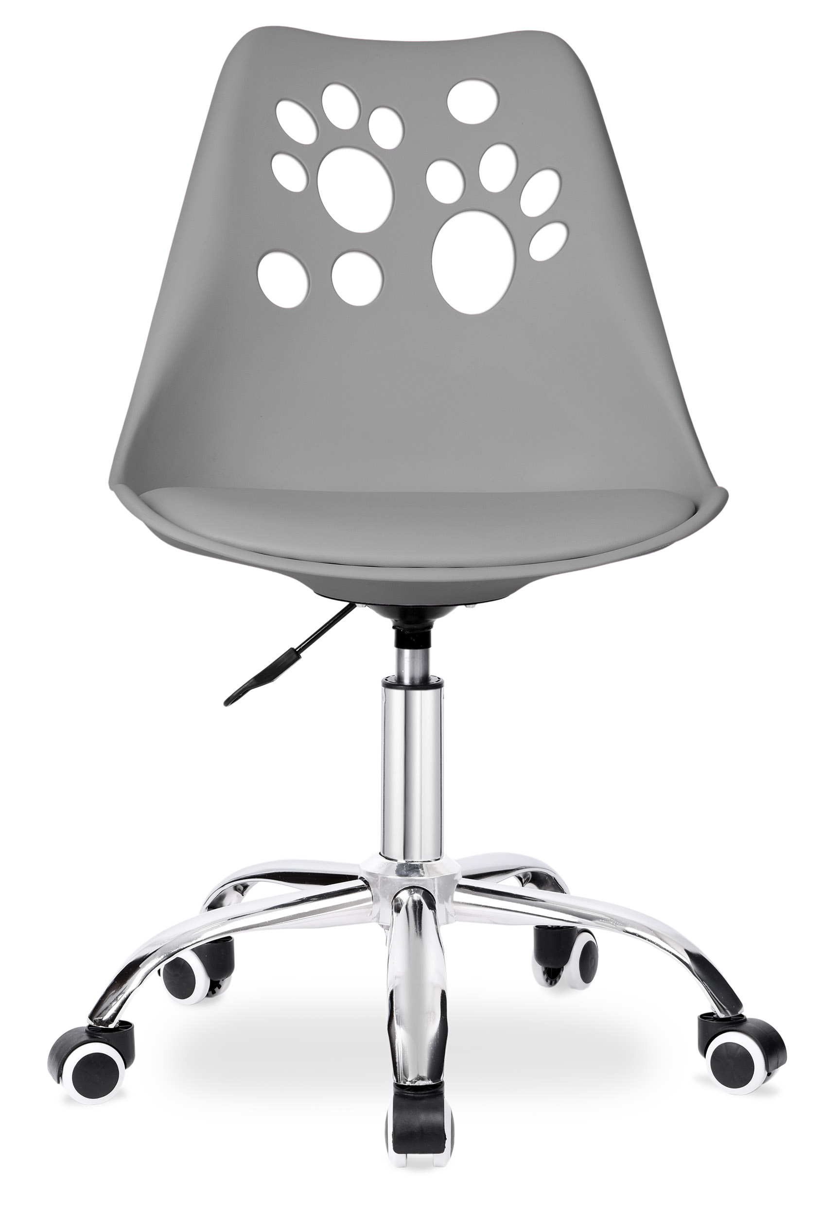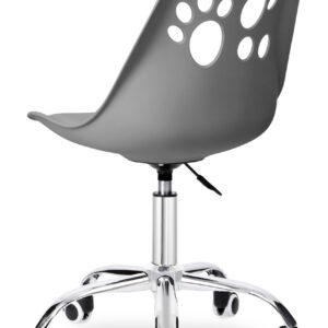 Krzesło obrotowe dziecięce Grover to solidny fotel biurowy z płynną regulacją wysokości. Oparcie wykonane z tworzywa w zabawne, zwierzęce wzorki- z pewnością zdobędzie uznanie podopiecznych. Miękkie, wygodne siedzisko z ekoskóry oraz stabilnej podstawy zwieńczonej chromem na wysoki połysk.