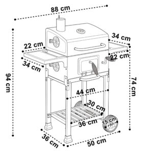 2 boczne półki + dolna półka na węgiel/akcesoria