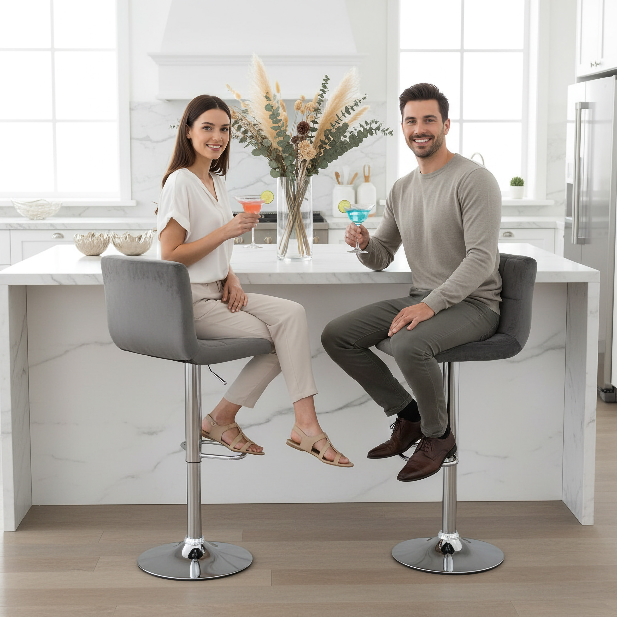 Hoker Arako z welurowym siedziskiem to nowoczesny i funkcjonalny mebel, który doskonale sprawdzi się w kuchni, jadalni czy przy wyspie kuchennej. Dzięki regulacji wysokości i miękkiemu obiciu zapewnia komfort siedzenia, a obrotowa konstrukcja 360 stopni umożliwia pełną swobodę ruchów. Ergonomiczna podpórka na nogi podnosi wygodę, a antypoślizgowa podstawa i chromowane wykończenie gwarantują stabilność oraz elegancki wygląd. To doskonały wybór dla miłośników stylowych i wygodnych rozwiązań, który dzięki solidnej konstrukcji i łatwemu montażowi będzie służyć przez lata, idealnie wpasowując się w każde nowoczesne wnętrze.