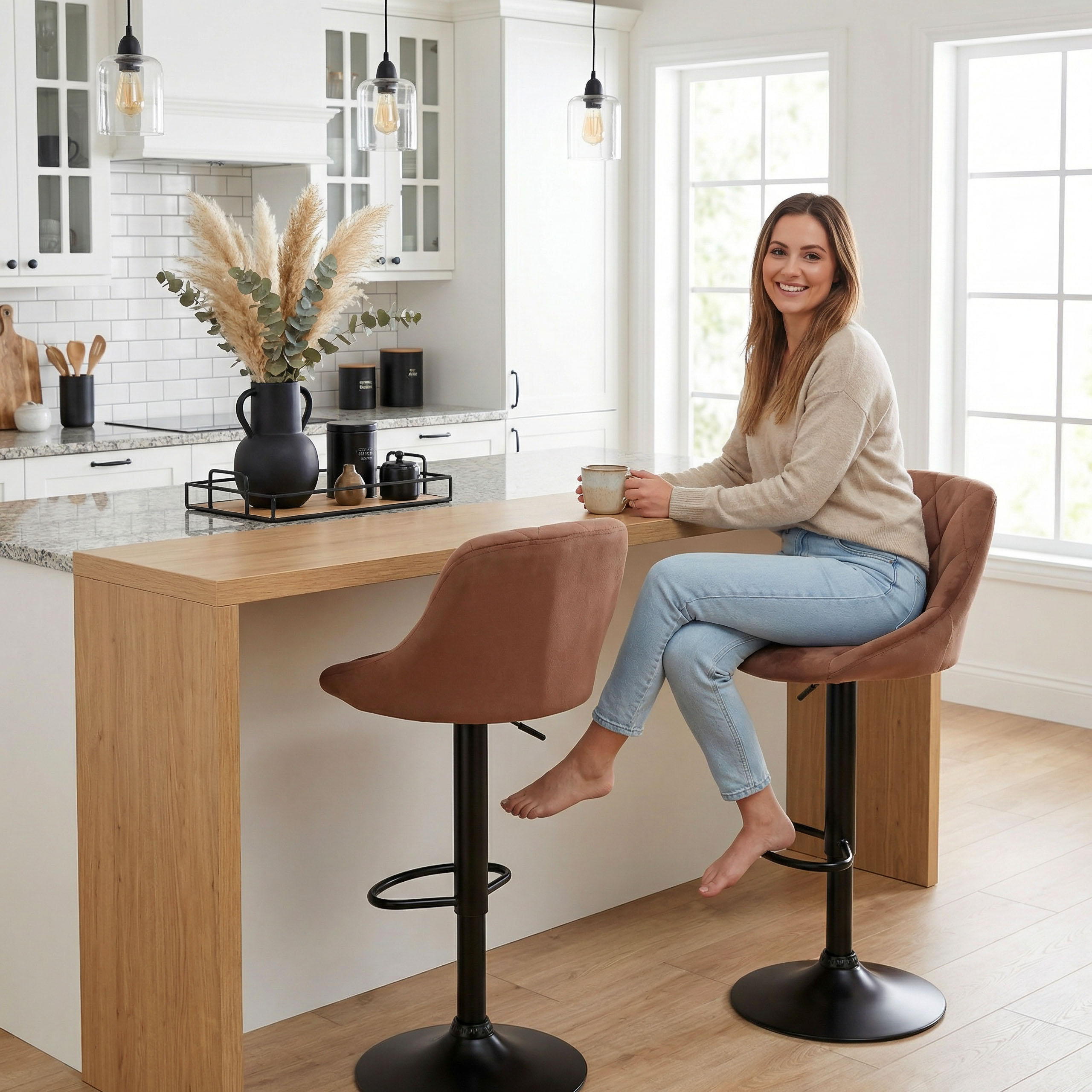 Stylowy, wygodny i funkcjonalny – hoker Cydro Black Mokka Velvet to połączenie elegancji z nowoczesnością, które odmieni każdą kuchnię, wyspę lub wnętrze w stylu loftowym. Miękkie welurowe siedzisko, regulacja wysokości i obracana konstrukcja gwarantują komfort na co dzień, a antypoślizgowa podstawa i solidne wykonanie dają Ci pewność, że to zakup na lata. Nie musisz wybierać między estetyką a wygodą – ten hoker daje Ci jedno i drugie.