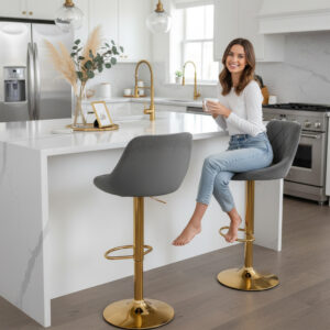 Hoker Cydro to idealny wybór dla osób, które cenią sobie zarówno wygodę, jak i elegancję. Dzięki ergonomicznemu siedzisku i nowoczesnemu designowi hoker doskonale sprawdzi się zarówno w nowoczesnej kuchni, jak i w przestrzeni loftowej. Jego wygodne oparcie i możliwość regulacji wysokości sprawiają, że jest idealnym rozwiązaniem do codziennego użytku, zapewniając komfort na długie godziny. Złote elementy dodają mu stylu, a geometryczne przeszycia przyciągają wzrok.