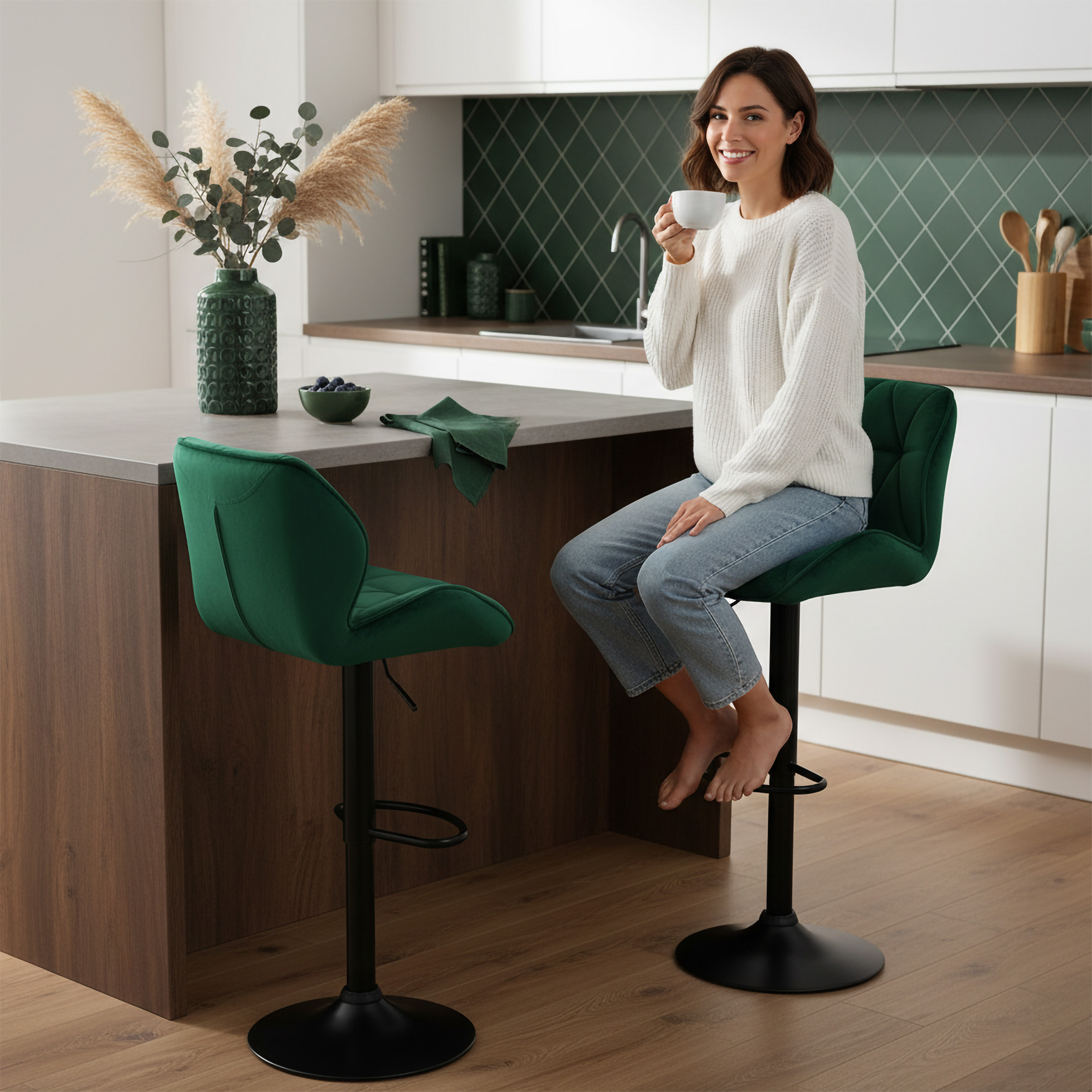 ✅Czarne elementy – Czarne elementy dodają hokerowi nowoczesnego charakteru oraz eleganckiego wykończenia, co sprawia, że jest on wyjątkowo atrakcyjnym elementem wystroju wnętrza. Ich połyskująca powierzchnia efektownie kontrastuje z welurową tapicerką, nadając całej konstrukcji ekskluzywnego i nowoczesnego wyglądu.