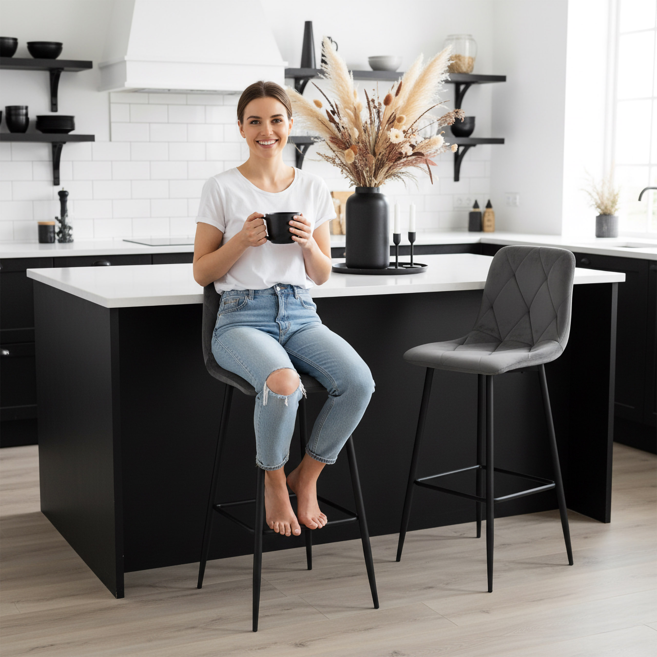 Jego minimalistyczny, loftowy styl idealnie wpisuje się w nowoczesne aranżacje, sprawiając, że jest nie tylko atrakcyjnym wizualnie, ale także praktycznym wyborem do kuchni, jadalni lub baru.
