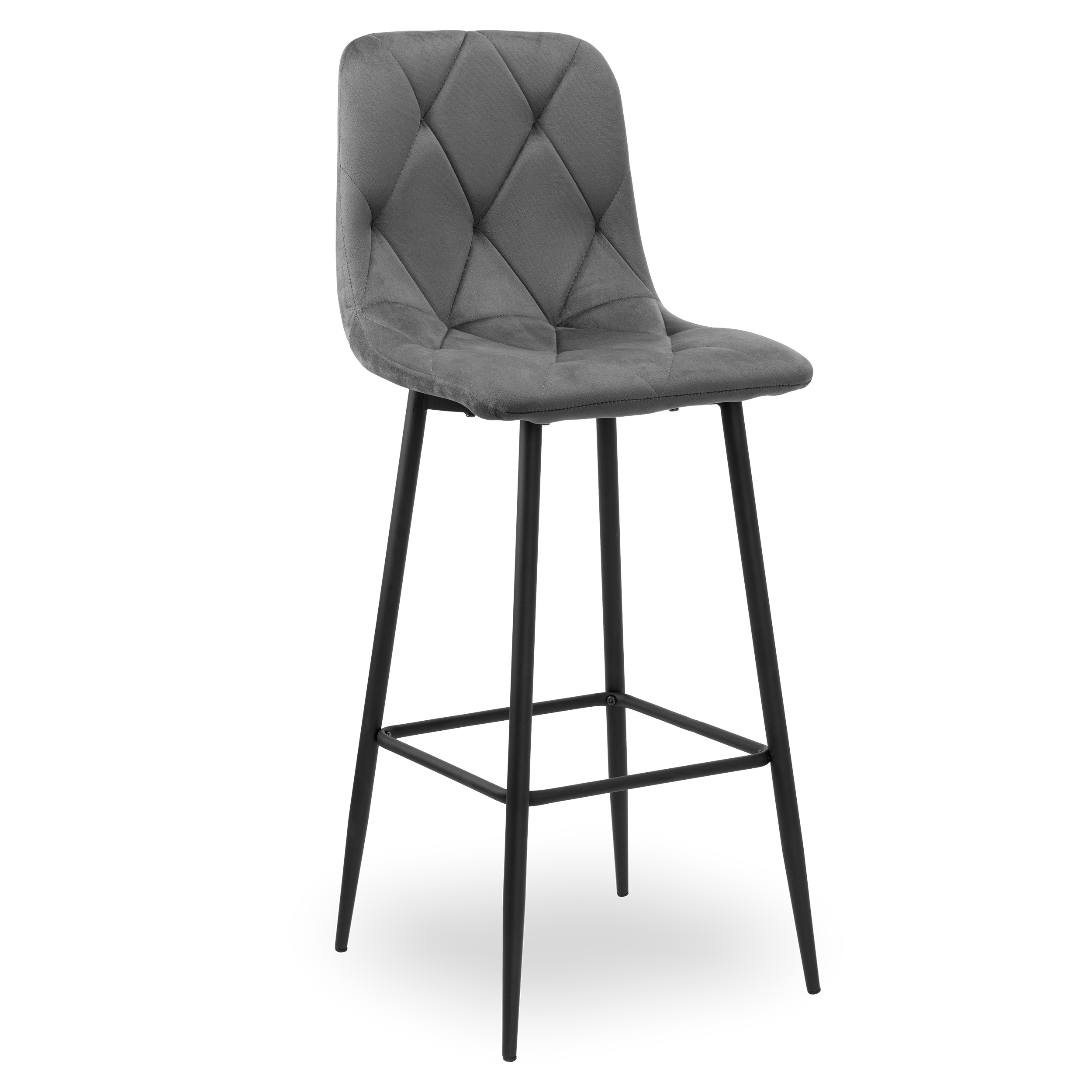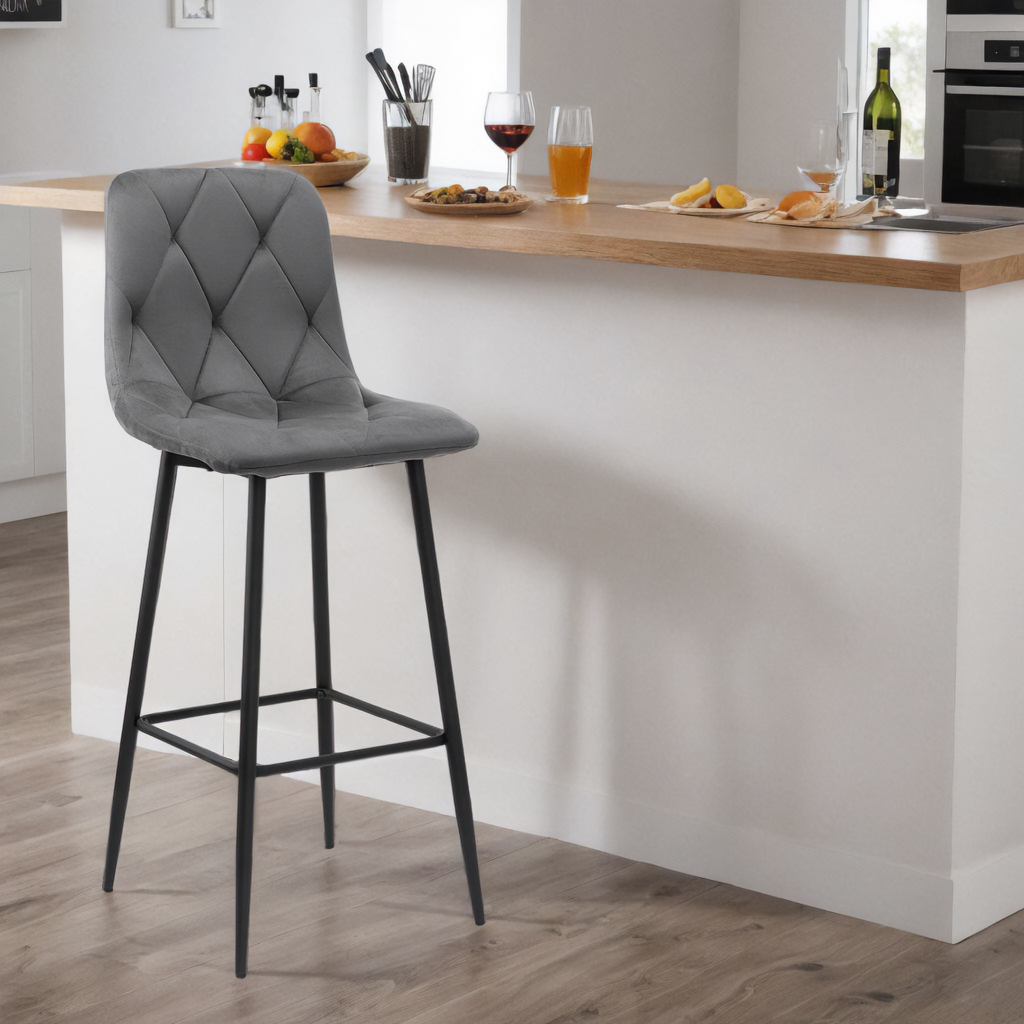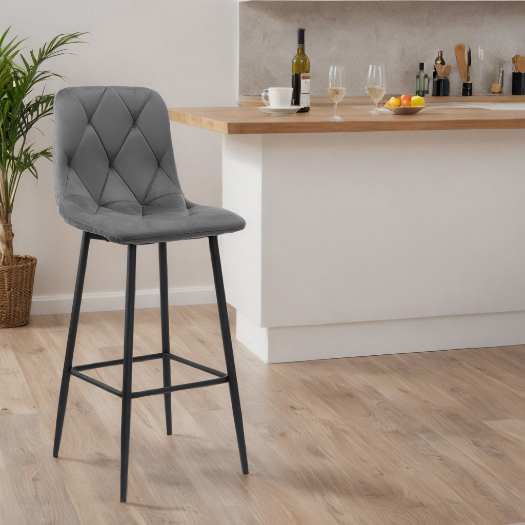 Pikowane siedzisko z miękkiego weluru zapewnia komfort, a malowana proszkowo stalowa rama gwarantuje solidność i długowieczność mebla.