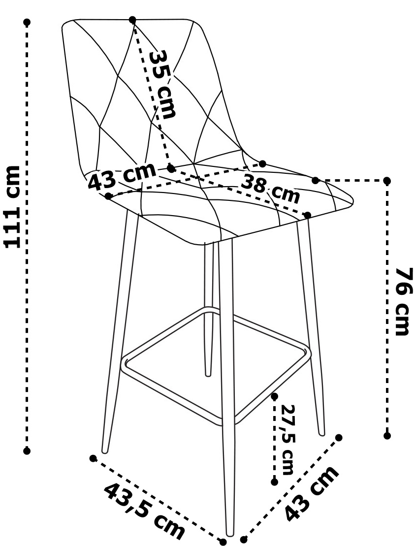 Rozstaw nóg: 43 x 43,5 cm