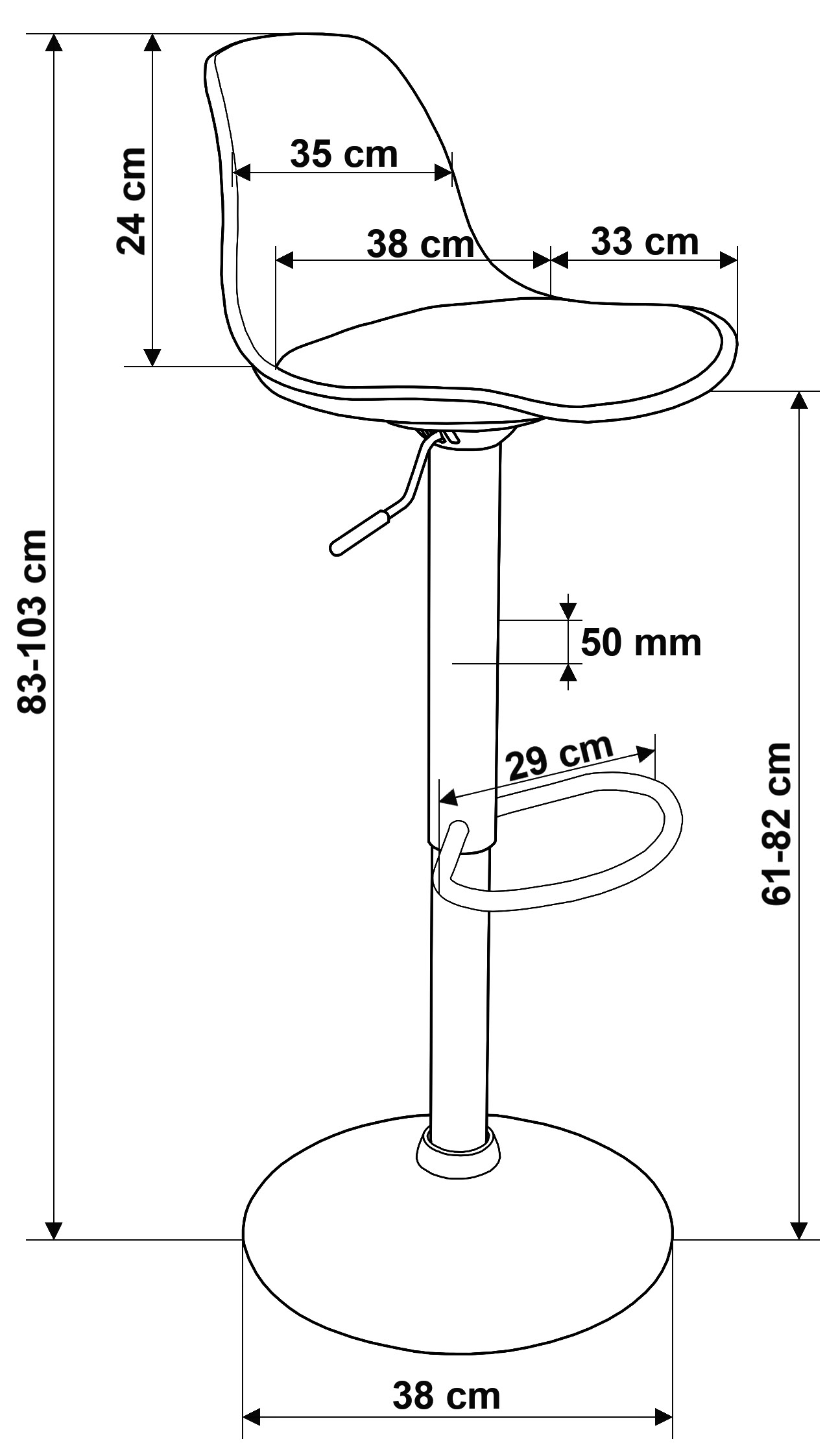 Max. wysokość do siedziska 82cm