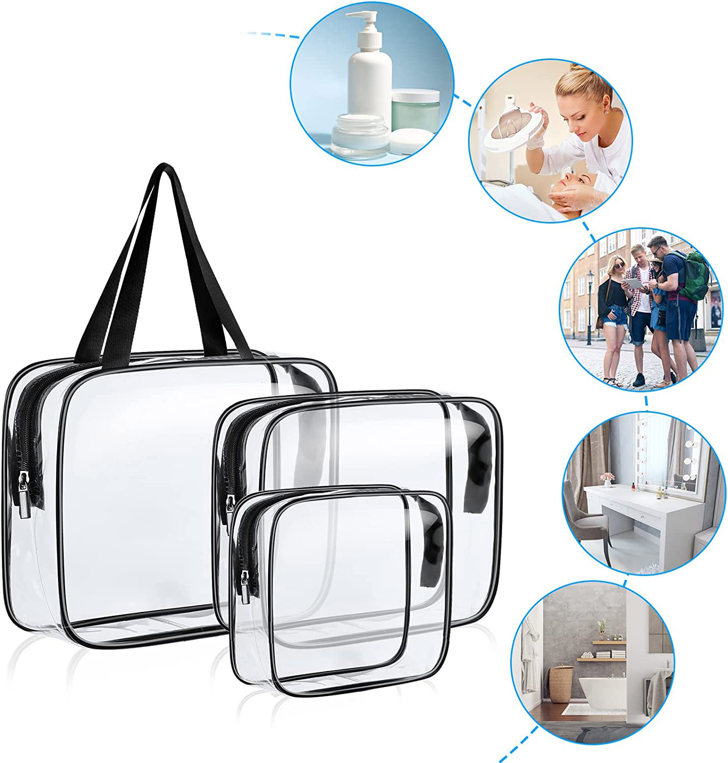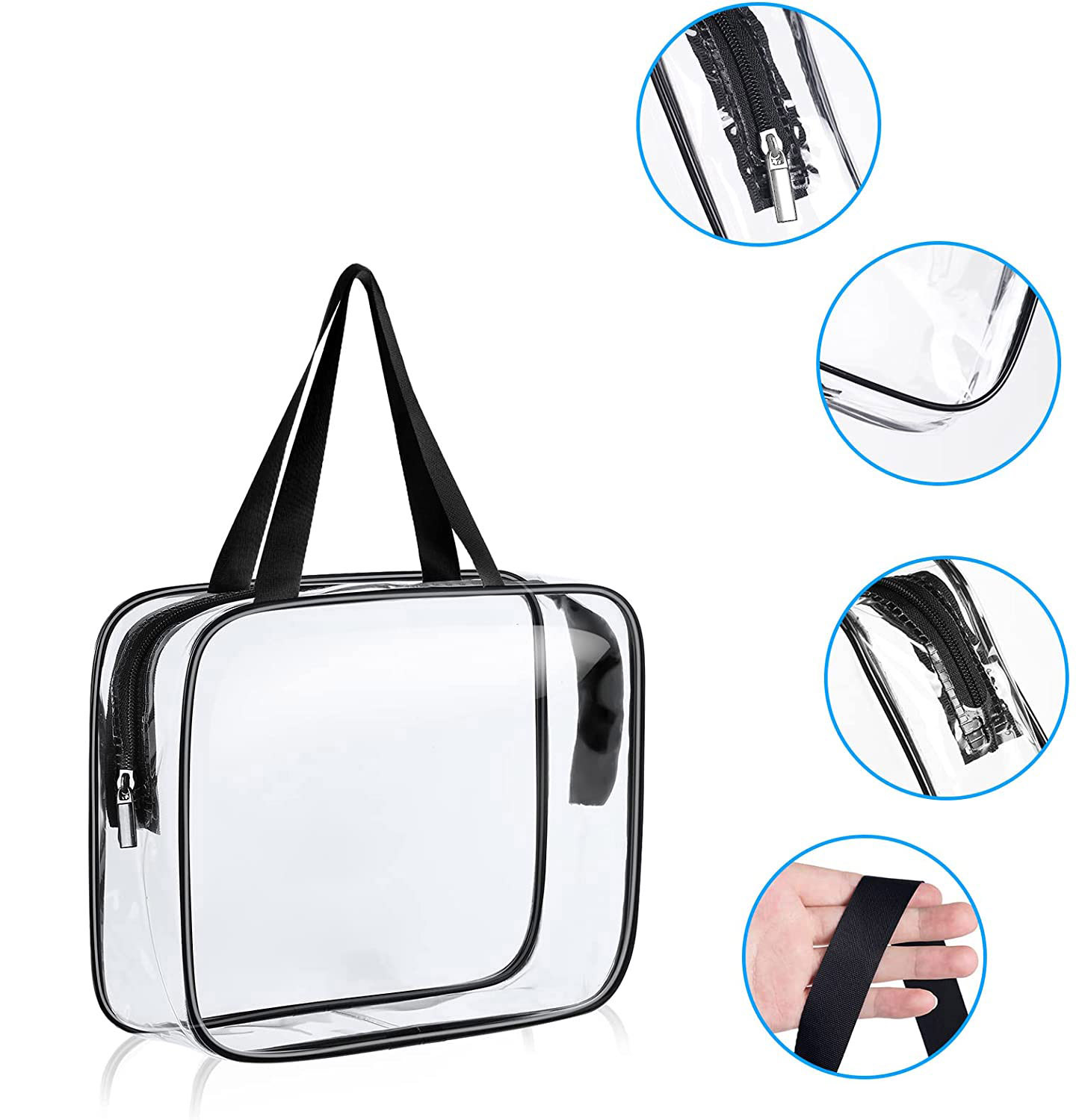 Zestaw kosmetyczek Penne to nie tylko idealne rozwiązanie dla codziennych potrzeb, ale również niezastąpiony towarzysz podczas podróży. Dzięki trzem różnym rozmiarom, kosmetyczki z zestawu Penne bez problemu pomieszczą się w każdej torbie podróżnej czy walizce, zapewniając w ten sposób porządek i organizację podczas podróży. Ich przezroczyste wykończenie pozwala na szybkie i łatwe znalezienie potrzebnego kosmetyku bez konieczności rozpakowywania całej zawartości bagażu. Dlatego zestaw kosmetyczek Penne to idealne rozwiązanie zarówno dla krótkich, jak i długich wyjazdów. Kosmetyczki zostały wykonane z trwałego i łatwego w czyszczeniu materiału PVC, dzięki czemu cieszą się długą żywotnością. Każda z nich posiada wygodny zamek błyskawiczny, co umożliwia szybki i łatwy dostęp do zawartości.
