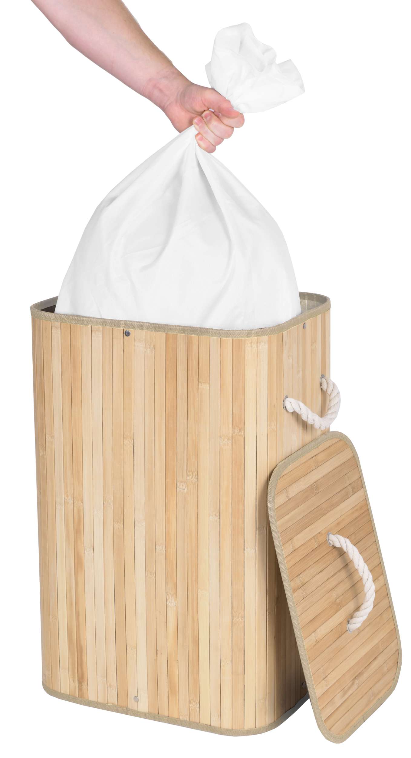 Najtrwalsze pojemniki na odpady o pojemności 80 litrów. Wykonane z naturalnego bambusa. Wnętrze wypełnia materiałowa torba. Prosta budowa, sztywna konstrukcja. Ukrywa nieprzyjemne zapachy. Umożliwia wygodne szybkie i pranie.