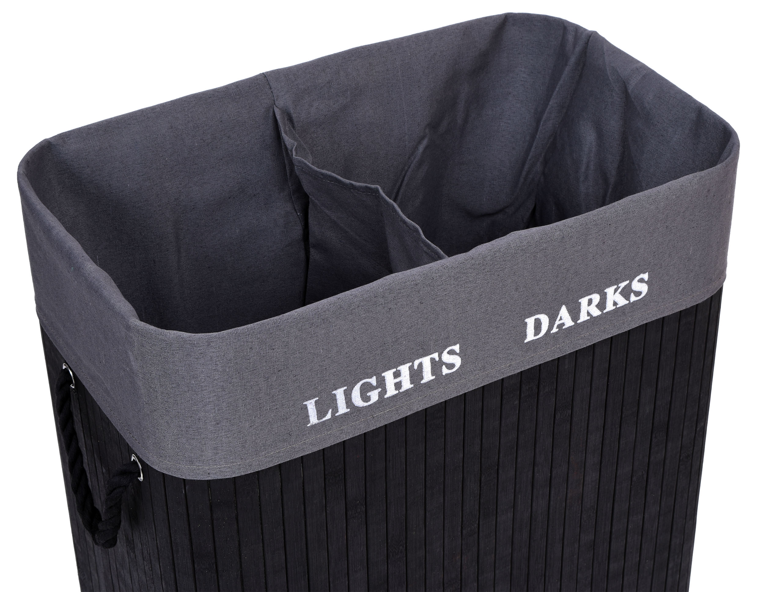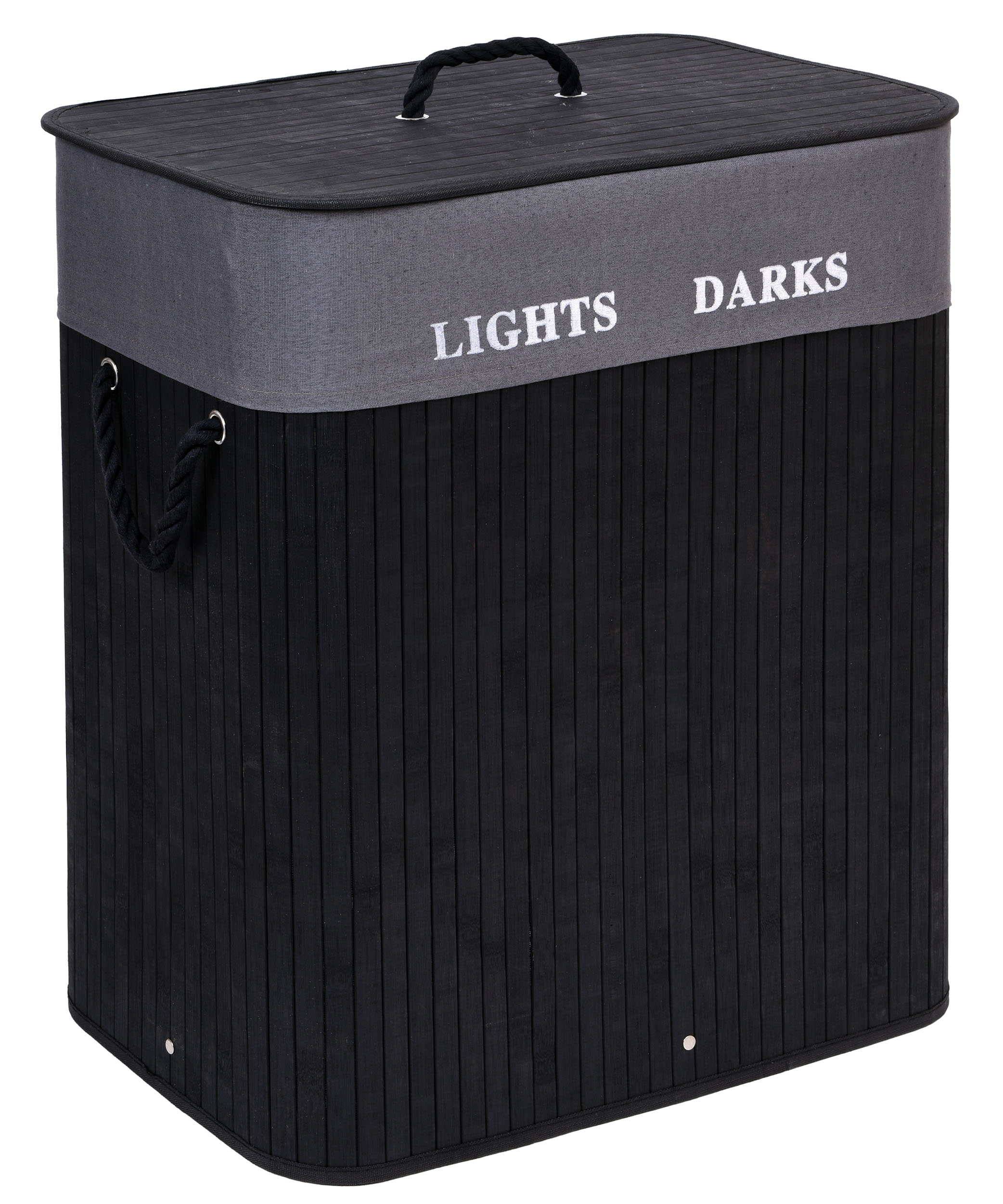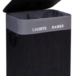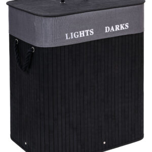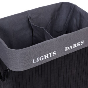 Kosz bambusowy pojemnik na pranie 2 komory czarny FSC