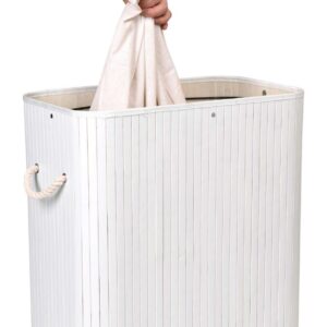 Najpiękniejszy i najtrwalszy, stylowy pojemnik na pranie o pojemności 100 litrów. Wykonany z naturalnego bambusa. Wnętrze wypełnia lniana torba z praktyczną przegrodą na jasne i ciemne pranie. Prosta, budowa, sztywna konstrukcja. Ukrywa nieprzyjemne zapachy. Umożliwia wygodne szybkie i pranie.