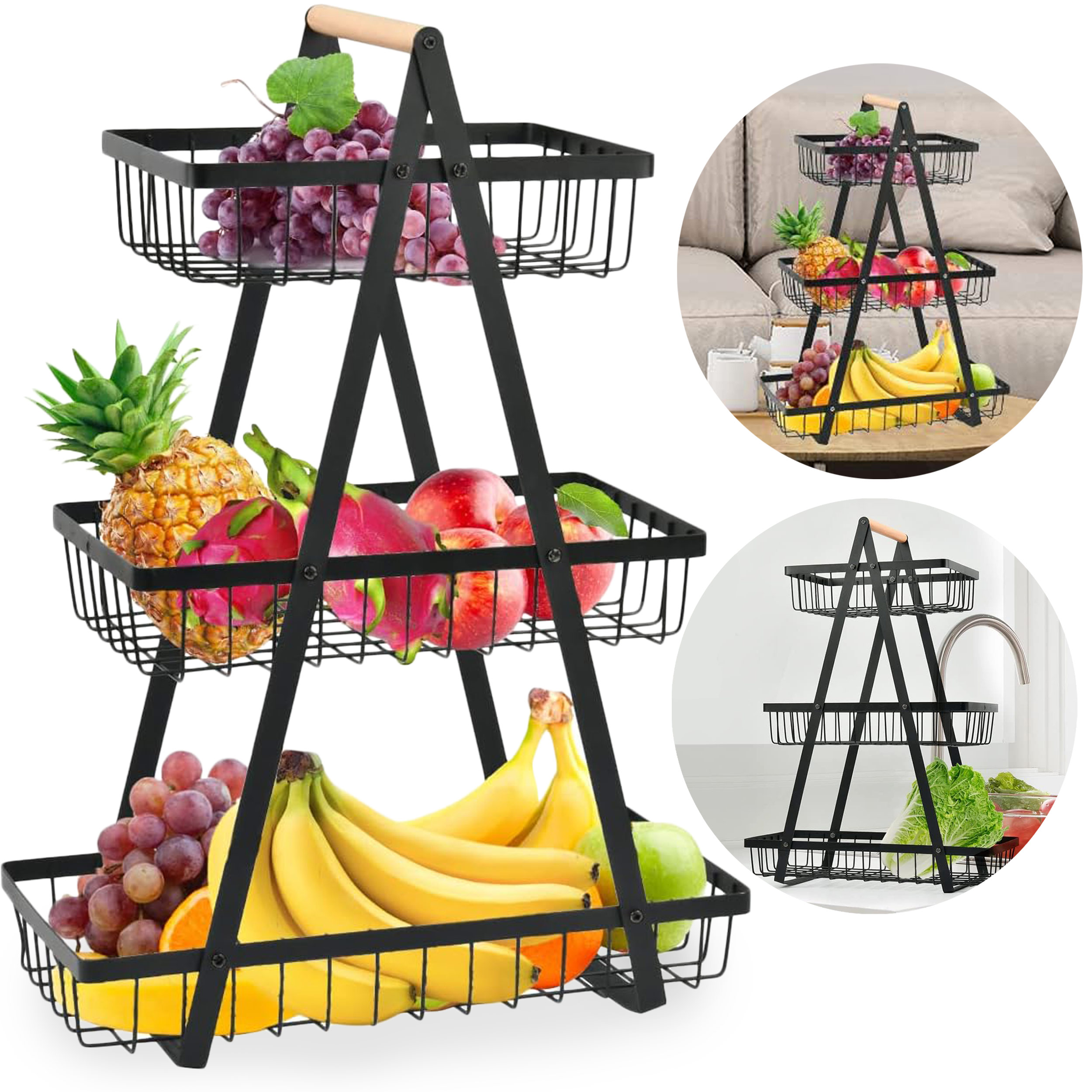 Kosz na owoce PULOS 3 poziomy czarny