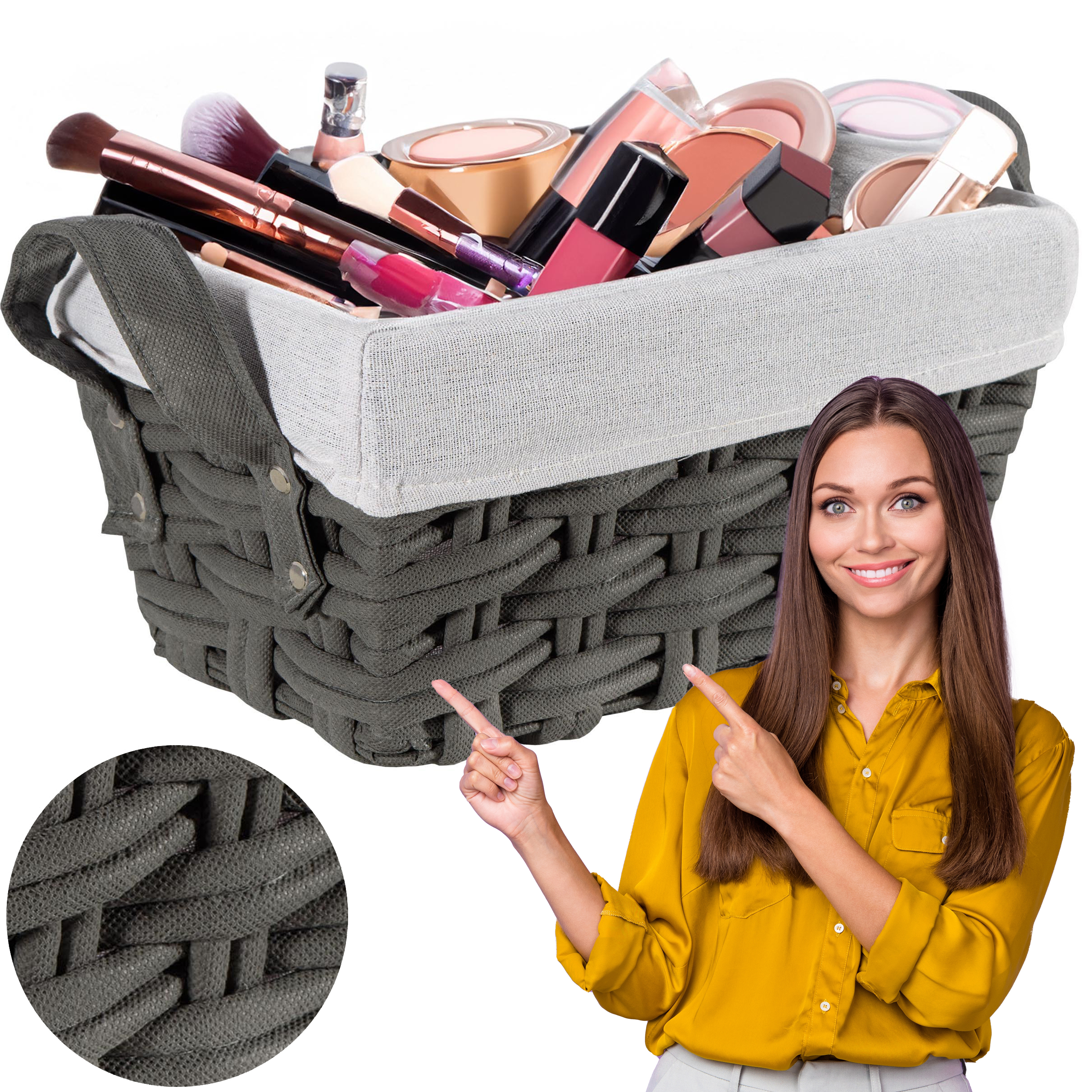 Koszyk pleciony Tiana to doskonałe połączenie funkcjonalności i estetyki. Wyplatany ręcznie z 100% poliestru, z wyściółką lnianą w środku, zapewnia nie tylko trwałość, ale także elegancję. Jego kompaktowe wymiary (30x20x15 cm) sprawiają, że świetnie nadaje się do przechowywania różnych drobiazgów.