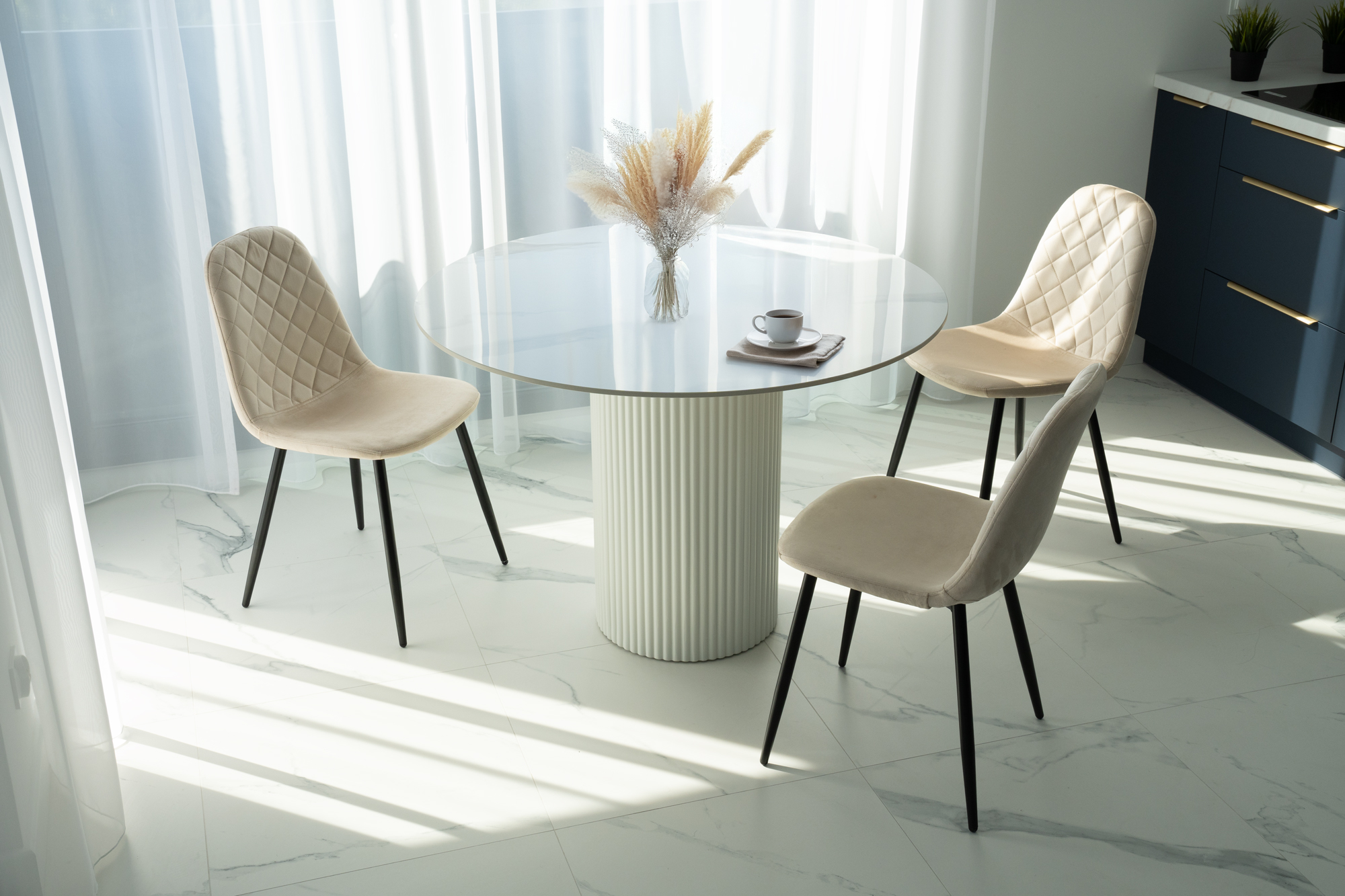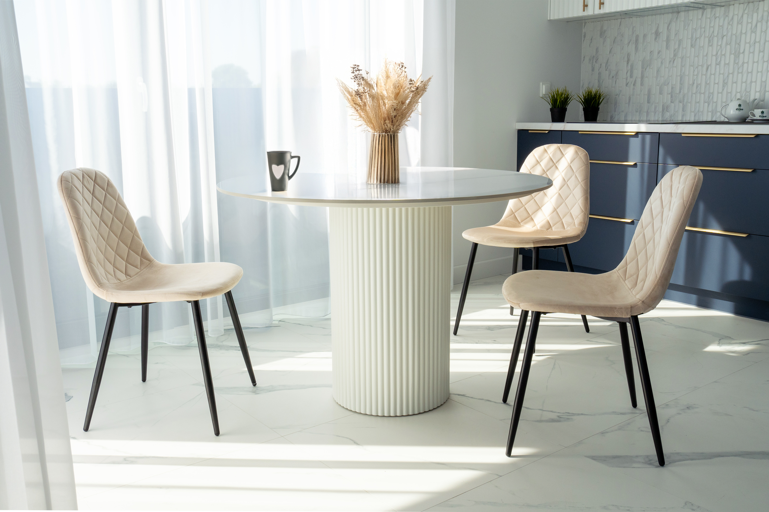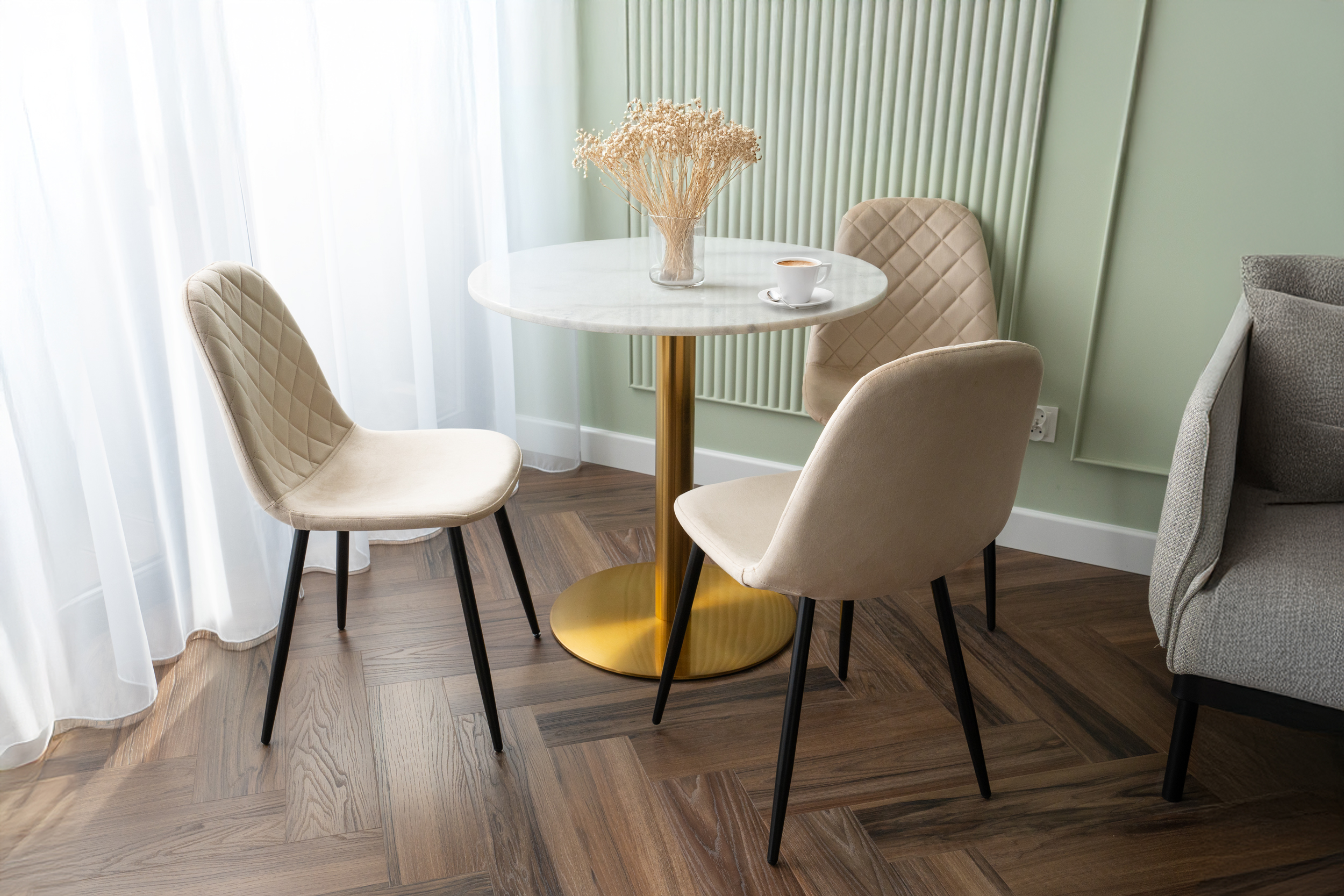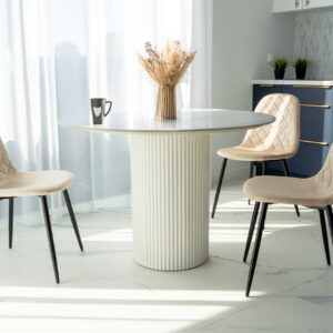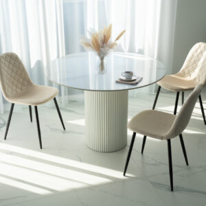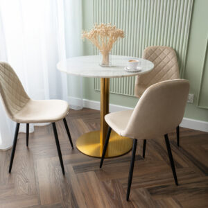 Unikalne krzesło Orlando wyróżnia się nowoczesnym designem i nietuzinkowym połączeniem miękkiego weluru oraz metalowych nóg. Wykonane z najwyższej jakości materiałów, z dbałością o każdy detal, z pewnością przyciągnie uwagę swoim geometrycznym, pikowanym wzorem w kształcie rombów. Krzesło Orlando to nie tylko designerski element dekoracyjny, ale także bardzo wygodne meble, idealne do nowoczesnych wnętrz w stylu loftowym i nowoczesnym. Doskonale sprawdzi się w salonach, restauracjach, ekskluzywnych sklepach, salonach kosmetycznych/fryzjerskich, eleganckich biurach czy punktach informacyjnych. Połączenie weluru i metalowych nóg doda pomieszczeniu nutę elegancji i niepowtarzalnego charakteru.