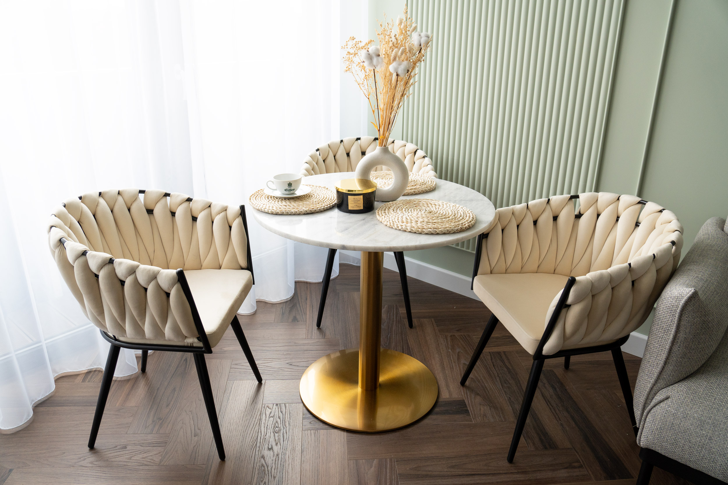 Krzesło welurowe plecione ASTON VELVET beżowe