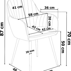 Tapicerowane i pikowane krzesło z przeszyciami. Ciekawy i wyrazisty wzór, który idealne wkomponuje się do wnętrz w stylistyce skandynawskiej lub vintage, nadając nieco ciepłego wyrazu. Siedzisko jest wyprofilowane i zapewnia komfortowe oparcie dla pleców. Metalowe nogi krzesła zapewniają stabilne podparcie na każdej powierzchni. Kupując u nas, kupujesz od bezpośredniego producenta!