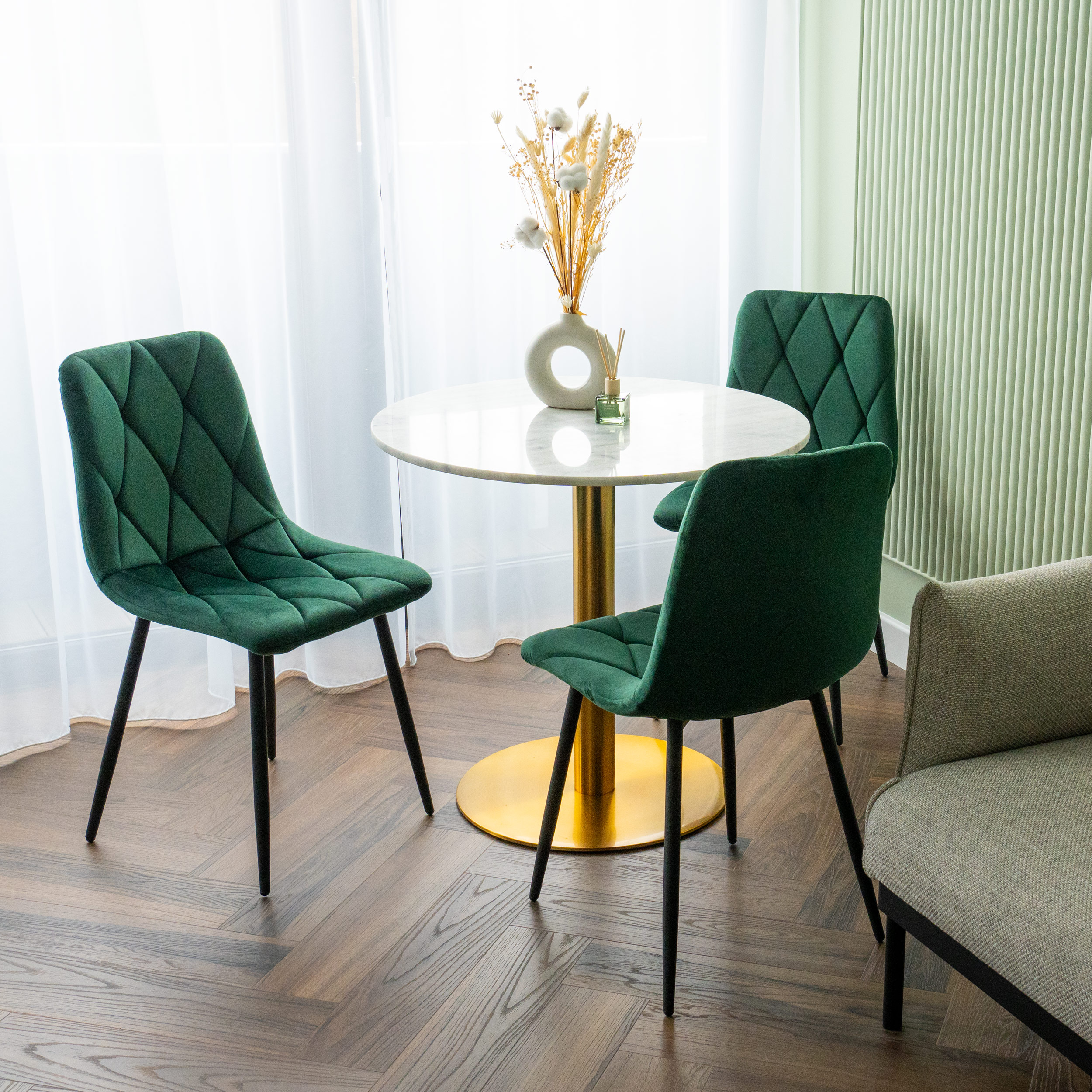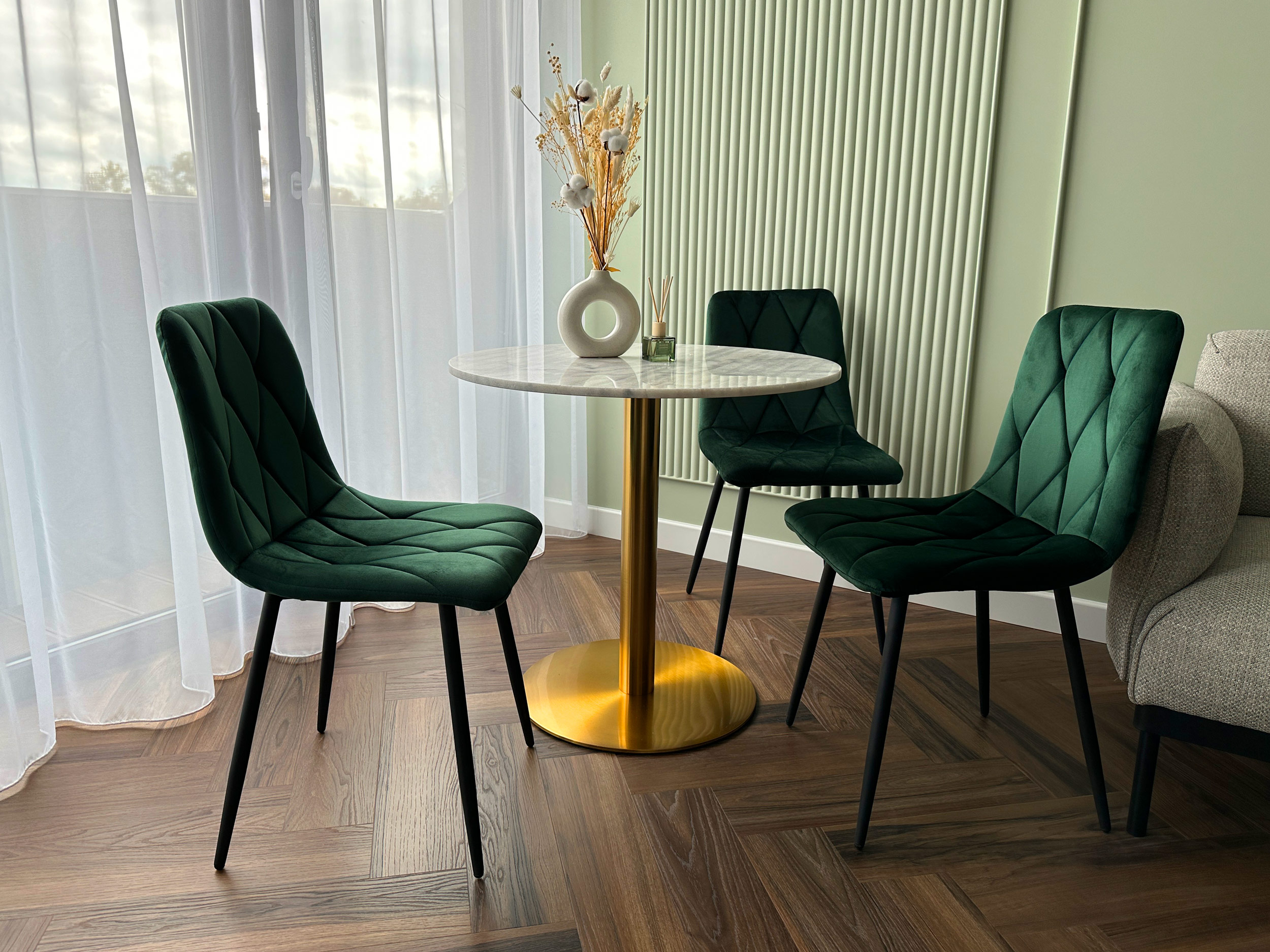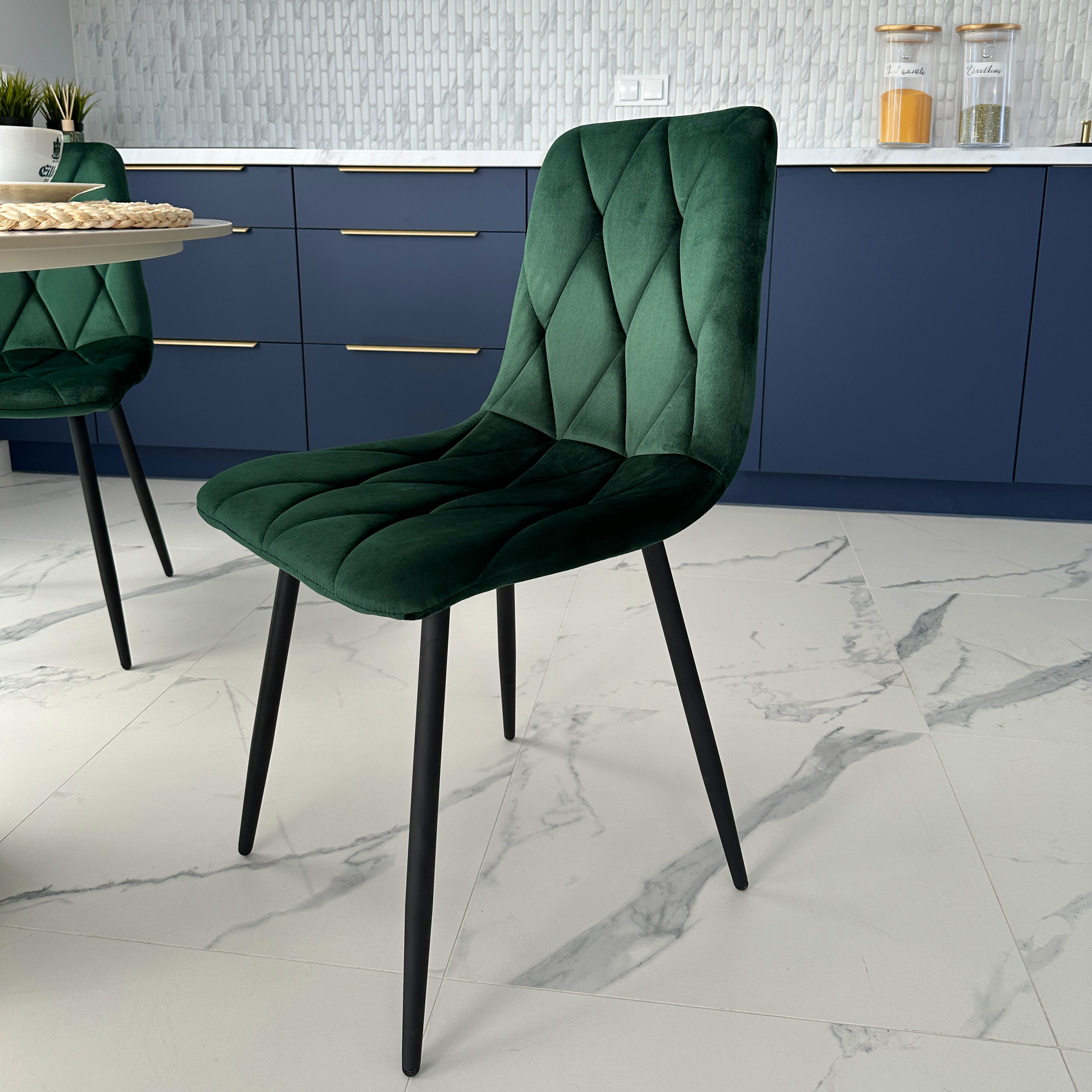 Krzesło welurowe tapicerowane Madison Velvet ciemnozielone