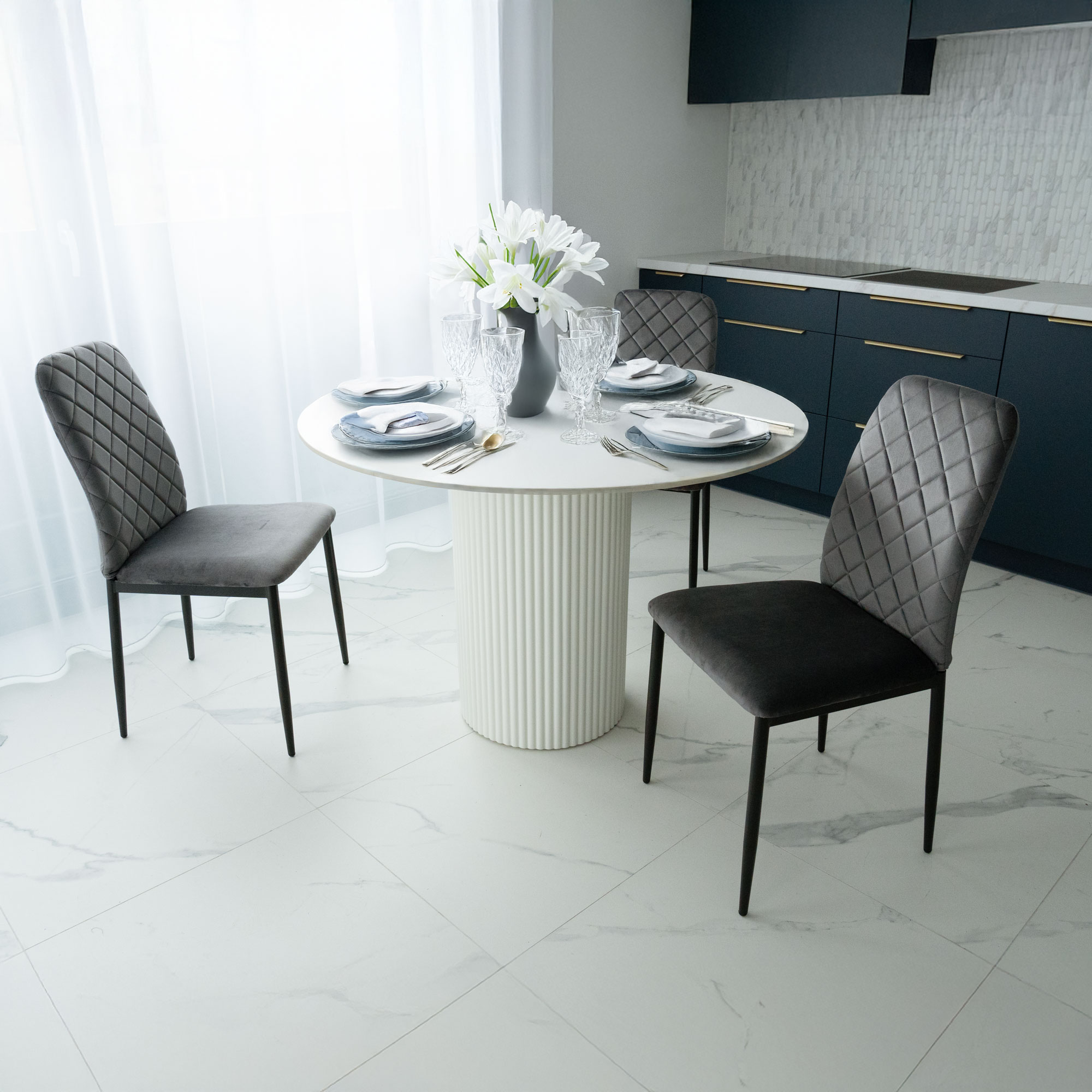 Krzesło Maverik to wyjątkowe krzesło zaprojektowane pod kątem stylu glamour oraz loft. Tapicerowane miękką aksamitną tkaniną z delikatnymi przeszyciami tworzącymi przyciągający wzrok wzór. Niezwykle wygodne o ergonomicznym kształcie.