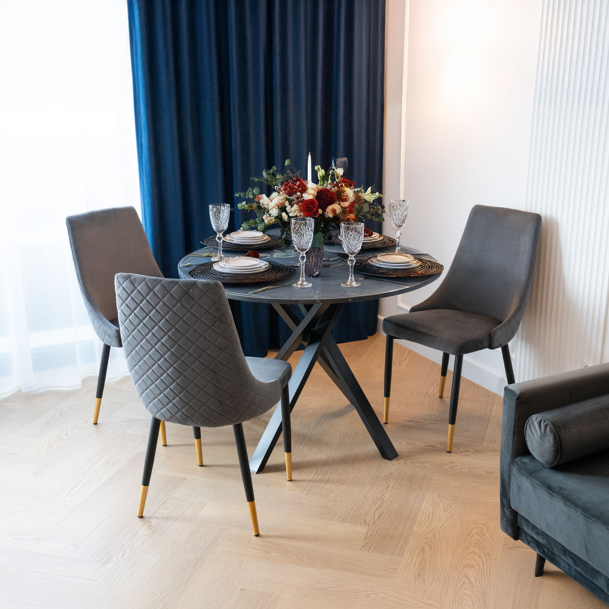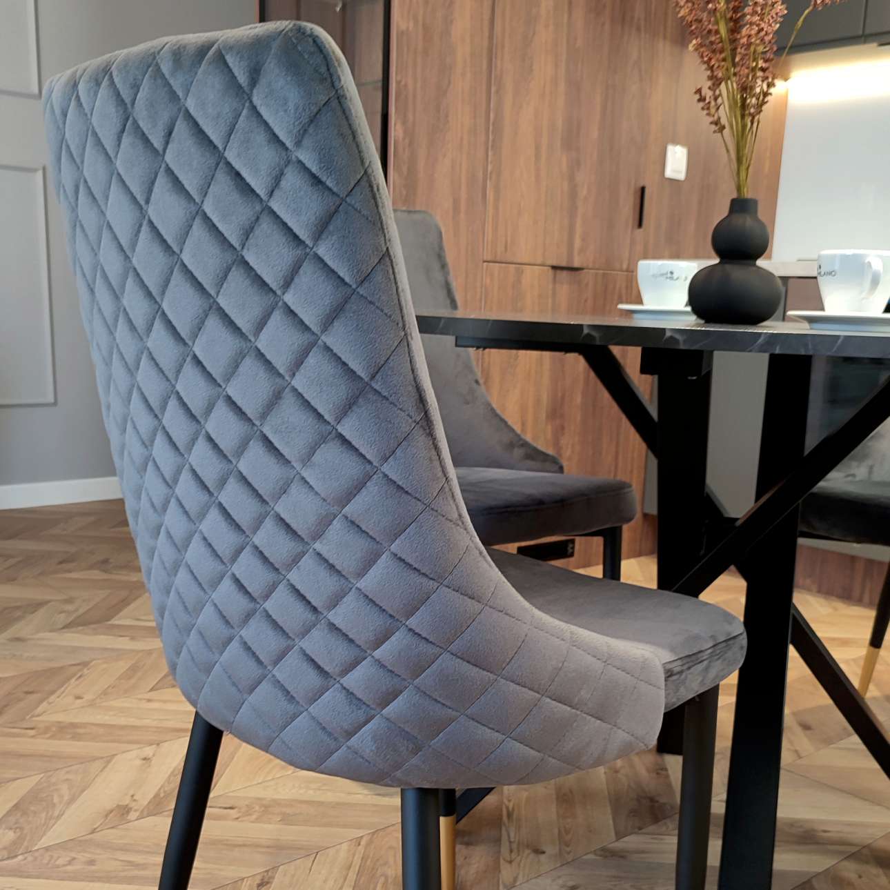 Krzesło welurowe tapicerowane Vermont Velvet grafitowe