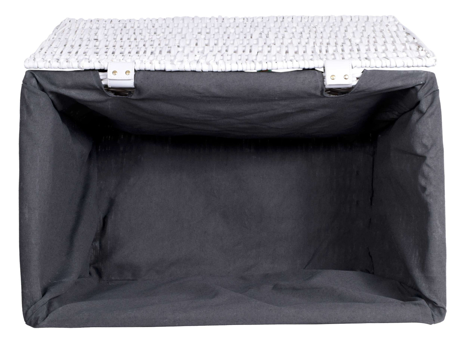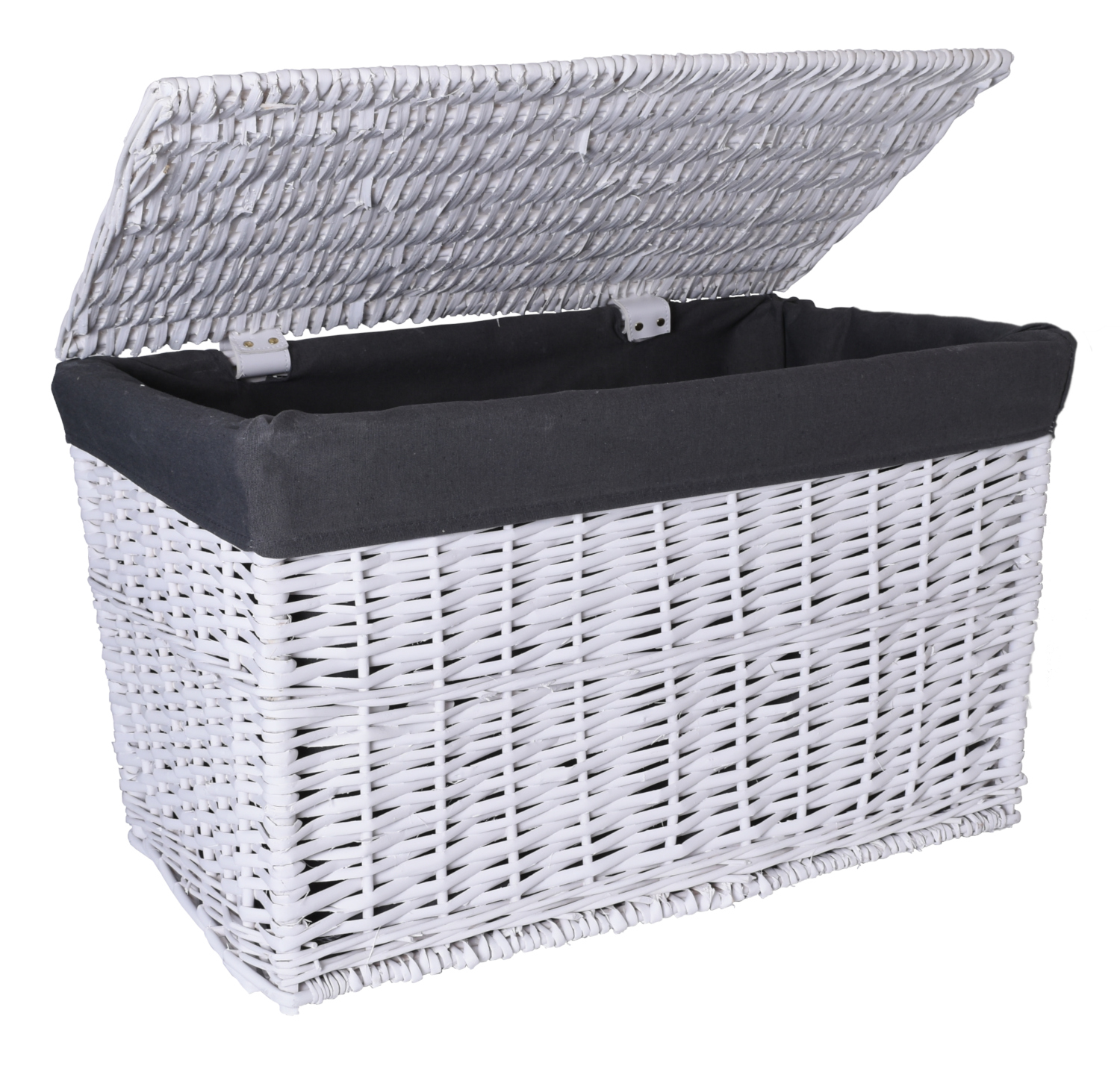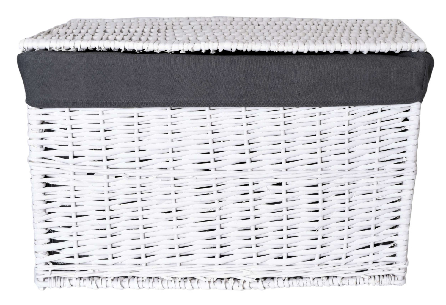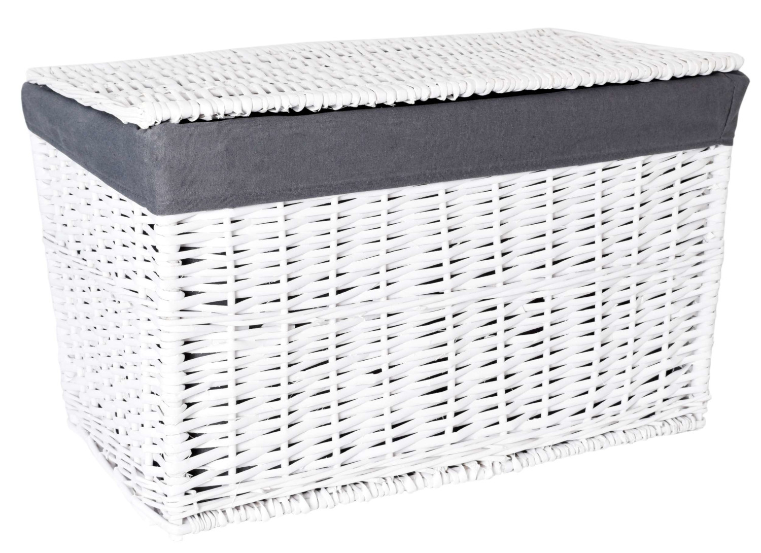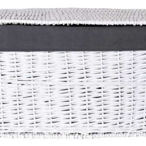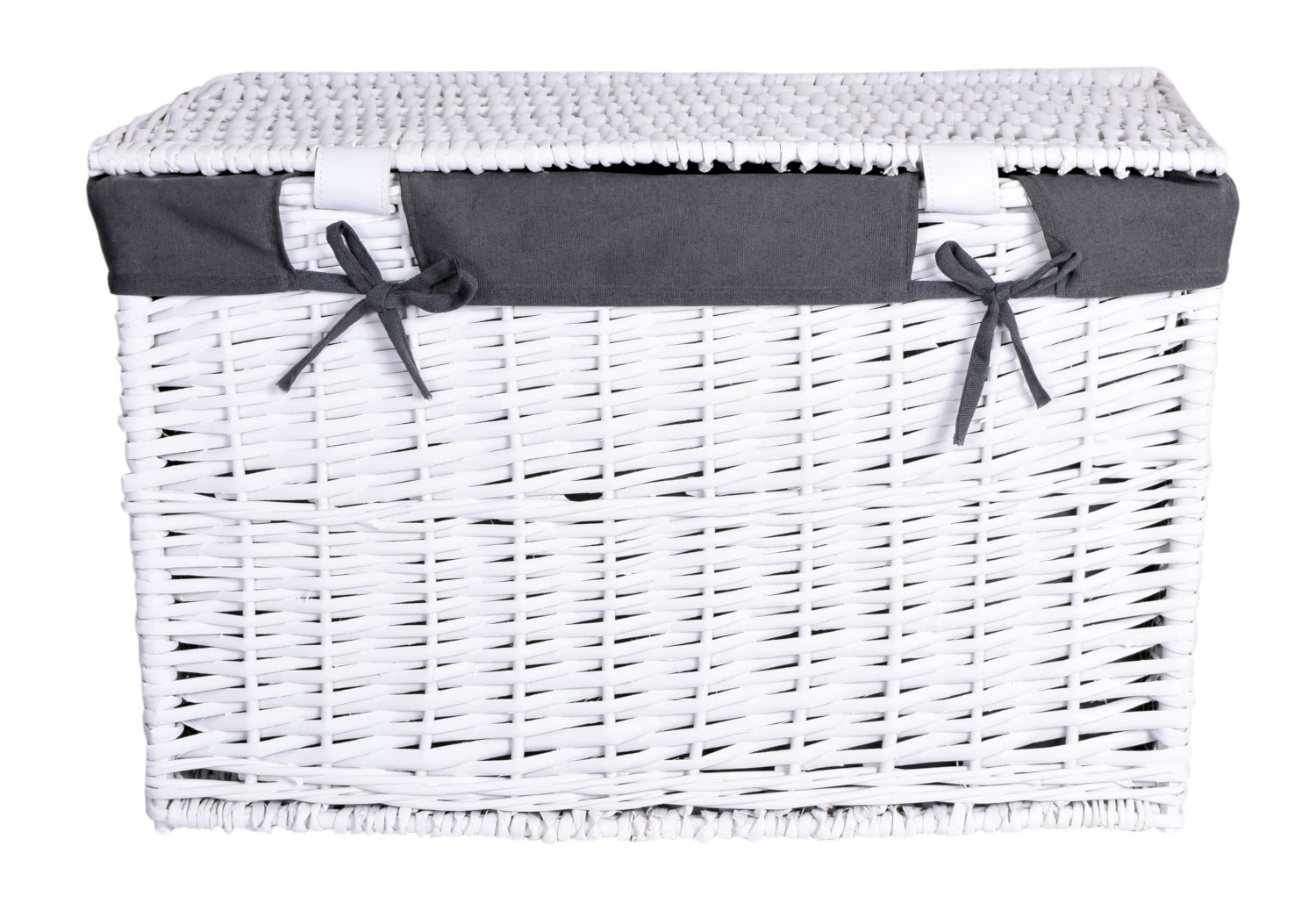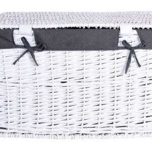Kosz wiklinowy idealnie sprawdzi się w łazience do przechowywania prania. Jest on bardzo ładnym uzupełnieniem, które dodaje charakteru dekorowanym pomieszczeniom. Produkt jest estetycznie wykonany z wikliny, a w środku wykończony lnianą wyściółką. Pokrywa posiada elastyczne paski, służące jako zawiasy.