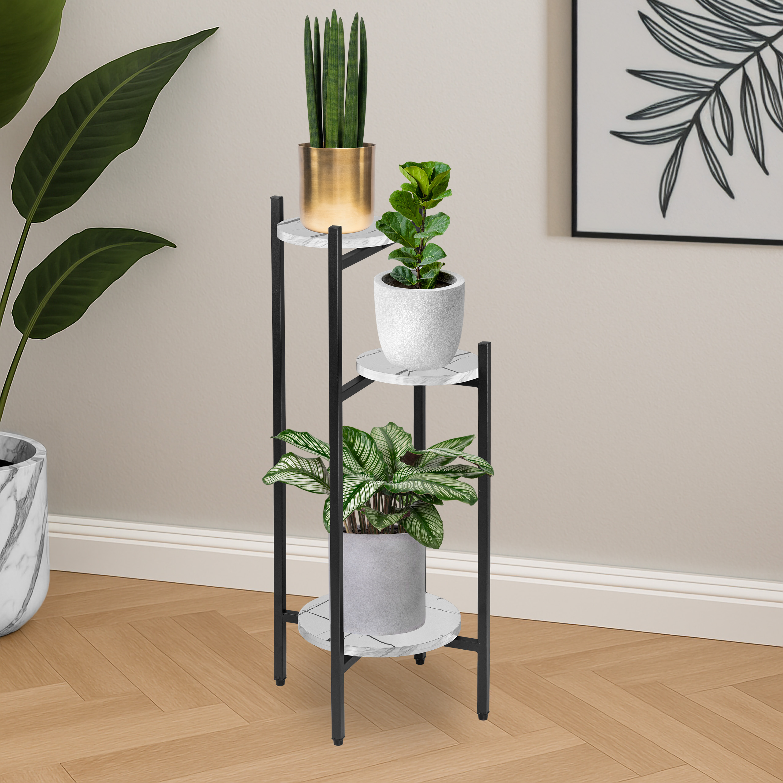 Kwietnik metalowy stojak na kwiaty TRETORRI biały marmur