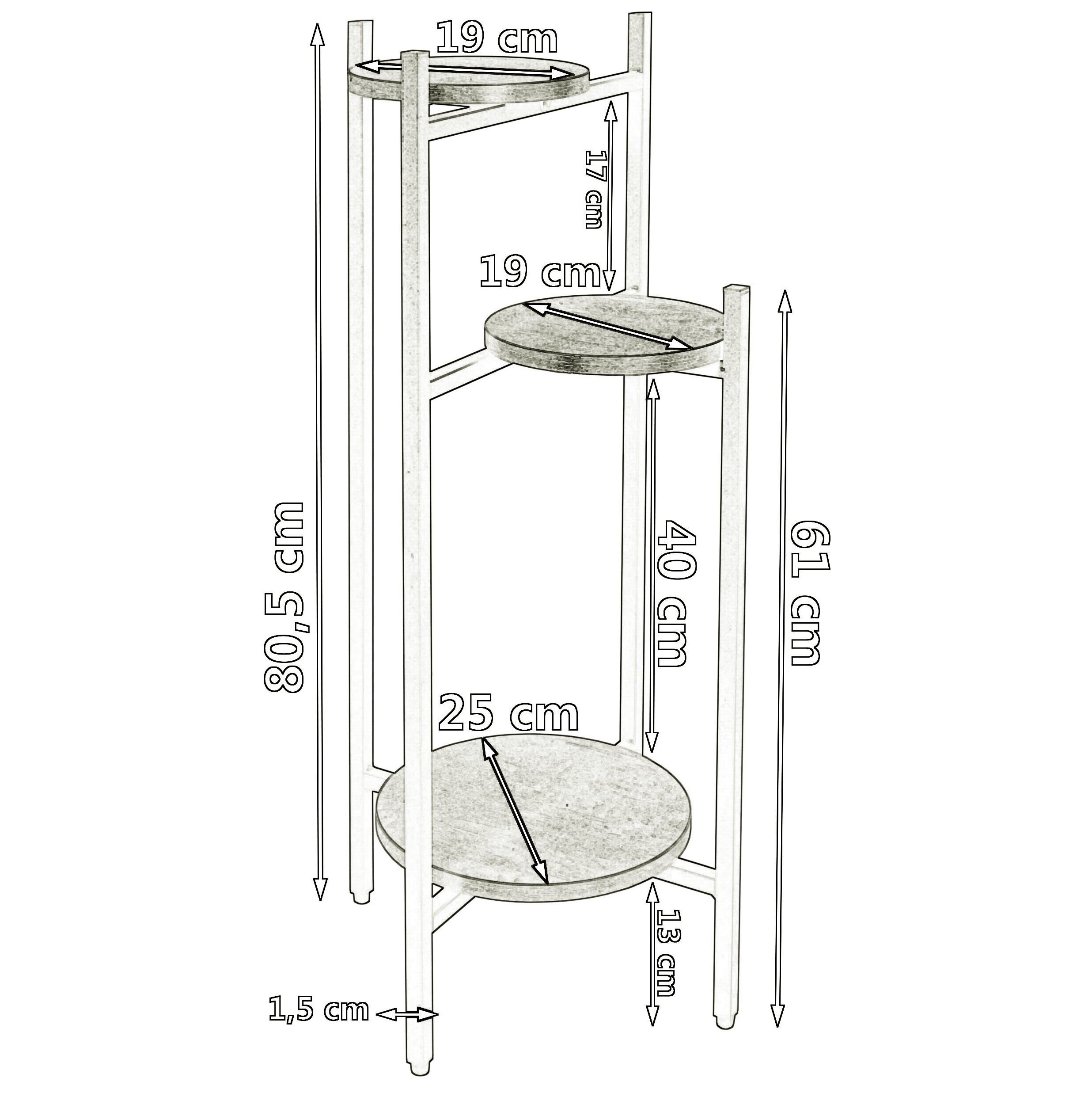 Średnica mniejszych półek: 19 cm