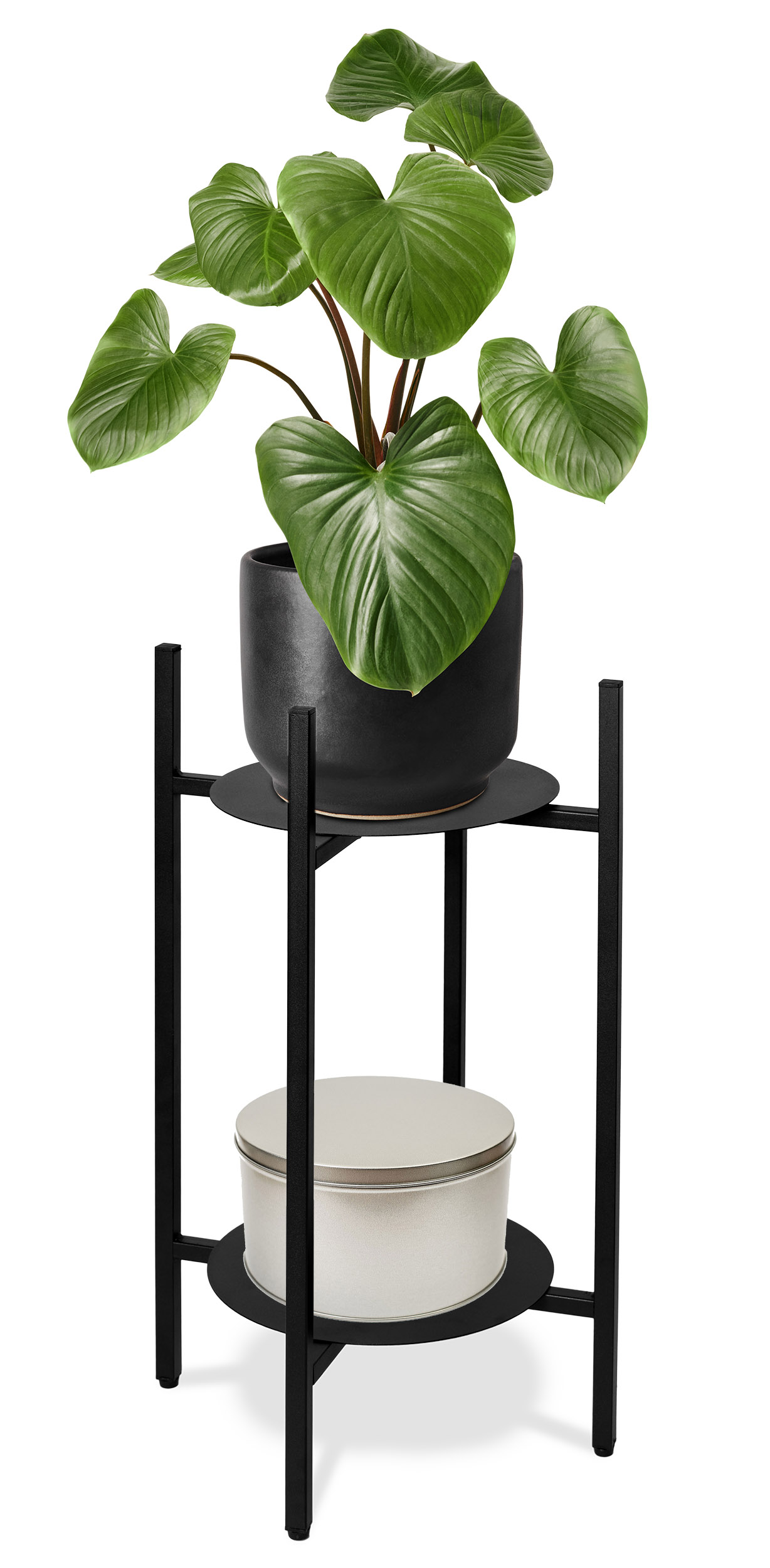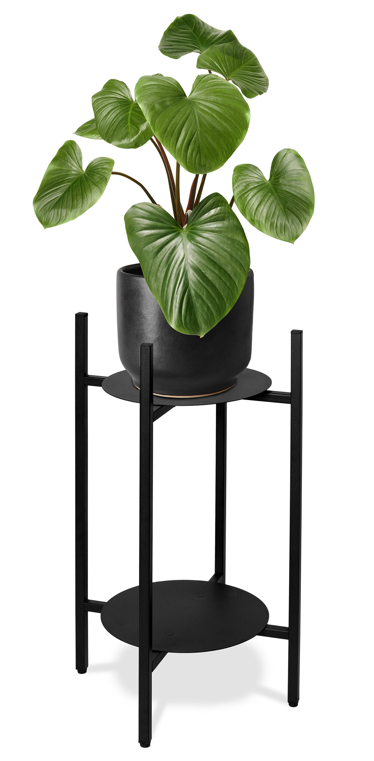 Uwaga: doniczka została użyta do celów aranżacyjnych. Przedmiotem sprzedaży jest metalowy, czarny stojak.