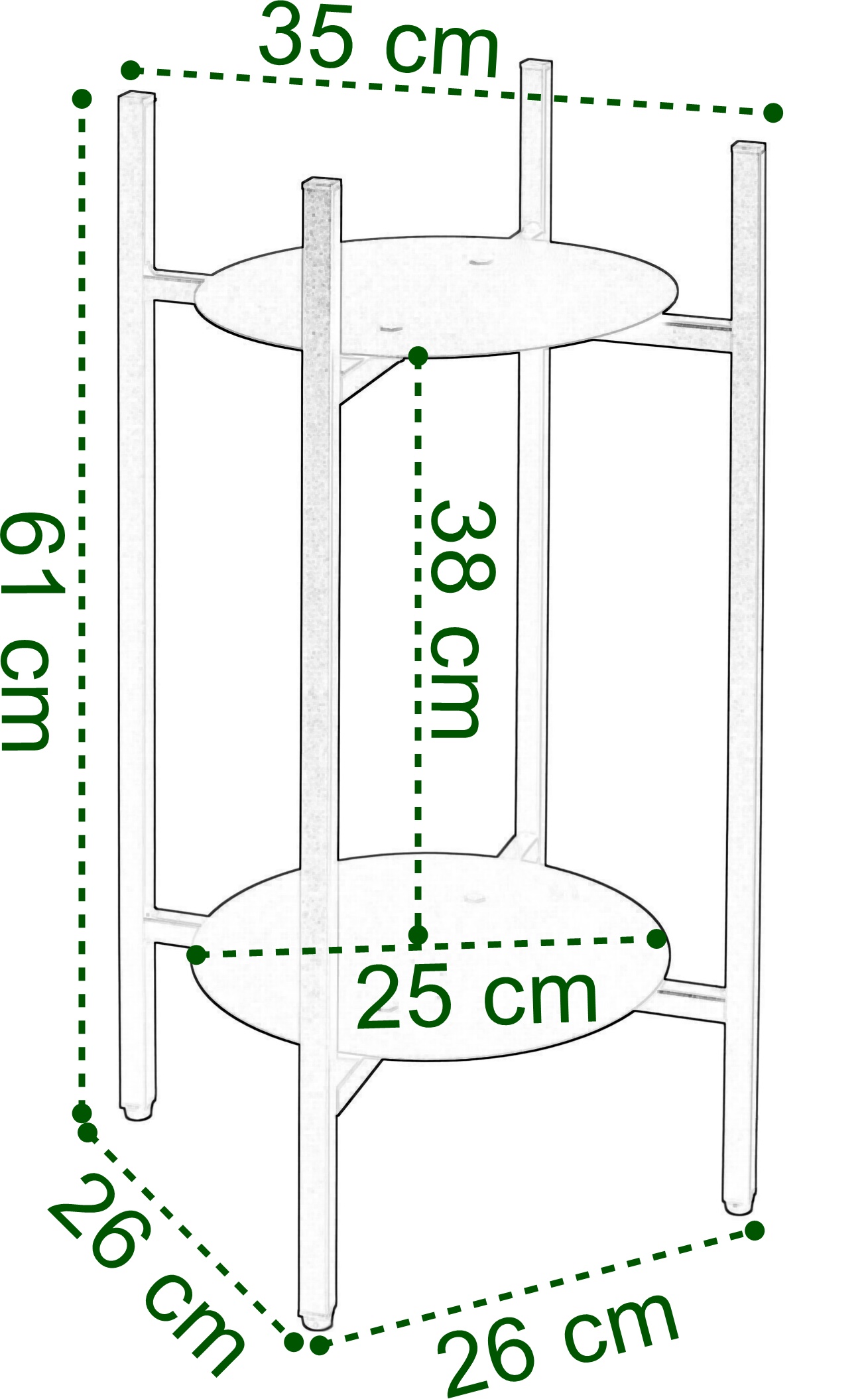 Kwietnik wysokiej jakości, wykonany ze stali malowanej proszkowo. Stojak na kwiaty Samir cechują dwie półki na kwiaty, na wysokości 14 cm oraz 52 cm. Z obu stron nogi zabezpieczono czarnymi zaślepkami.