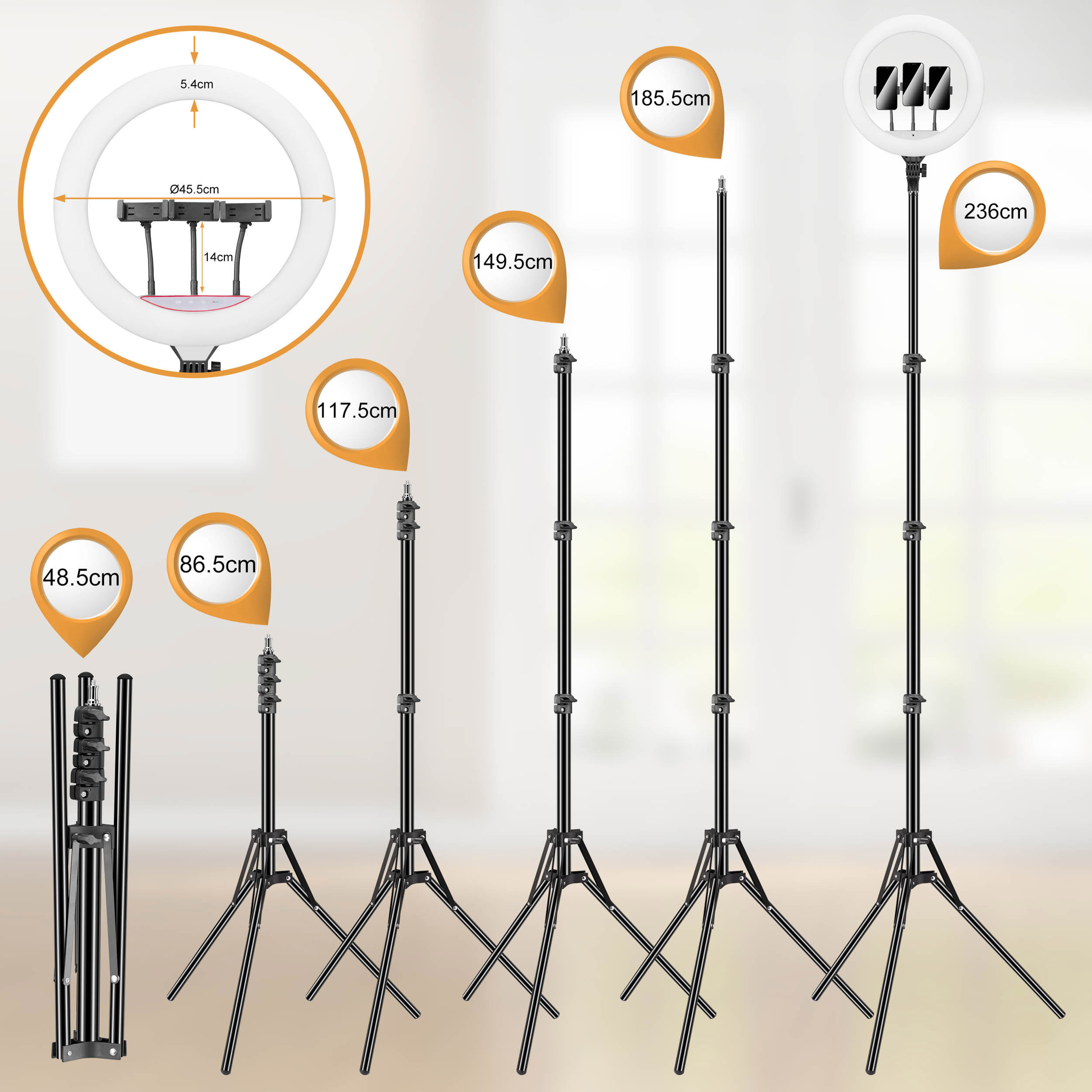 ⭐️ Lampa pierścieniowa z regulowanym statywem