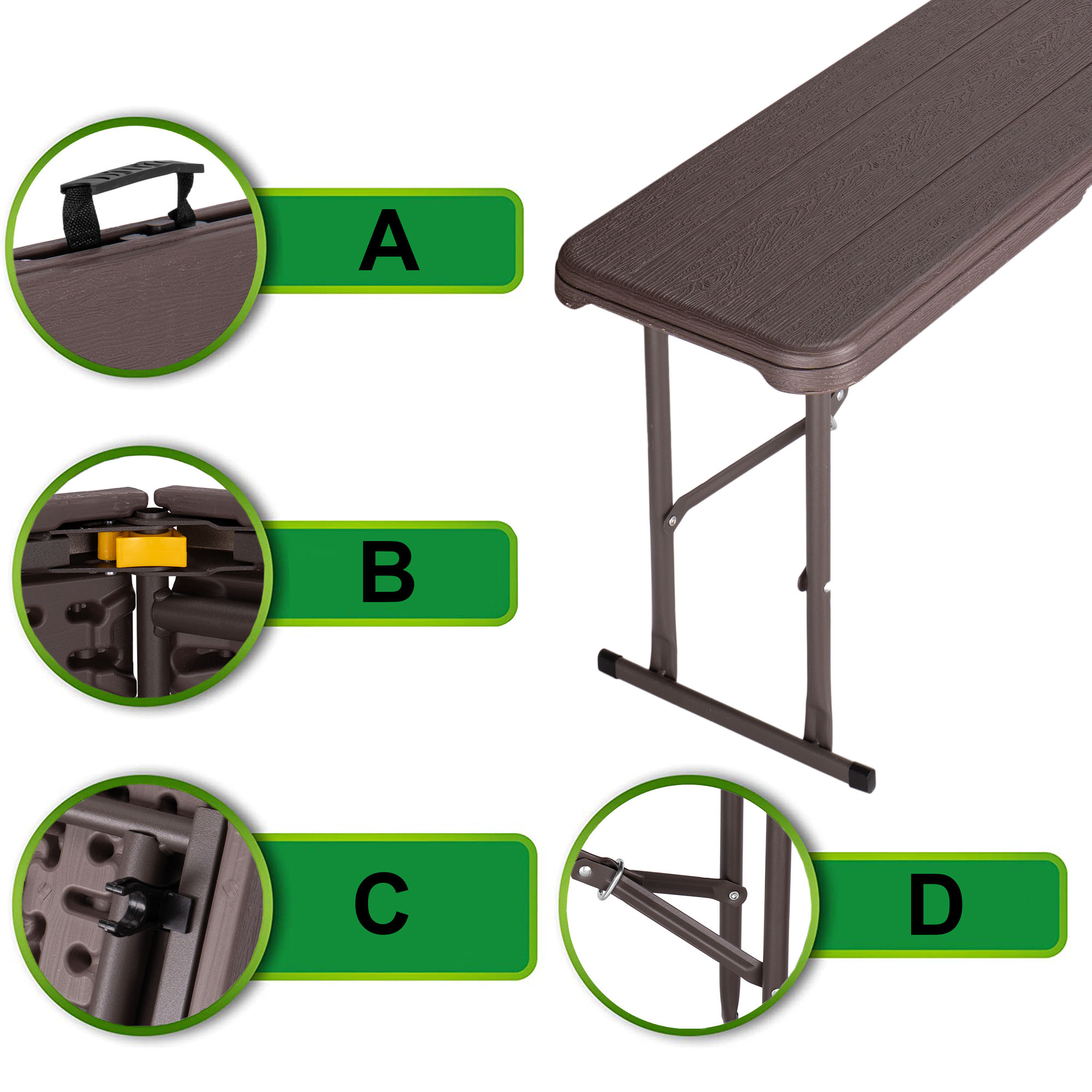 ☀️Ławka cateringowa Woodland składana brązowa – Idealna na imprezy plenerowe, do ogrodu, na działkę, camping, piknik☀️