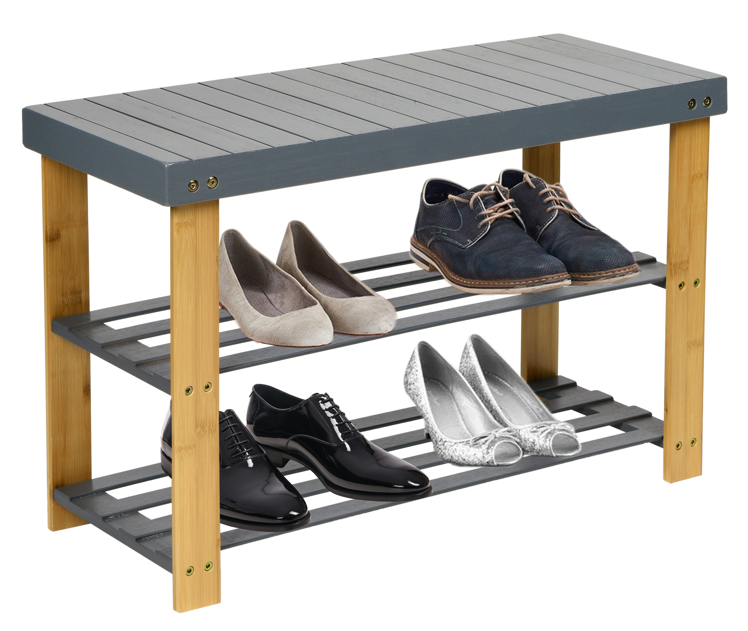 Dwa poziomy z odpowiednim odstępem zapewniają miejsce na maksymalnie 6 par butów, regał na buty może być używany również jako ławka, można też na nim stawiać rośliny, torby lub akcesoria łazienkowe.