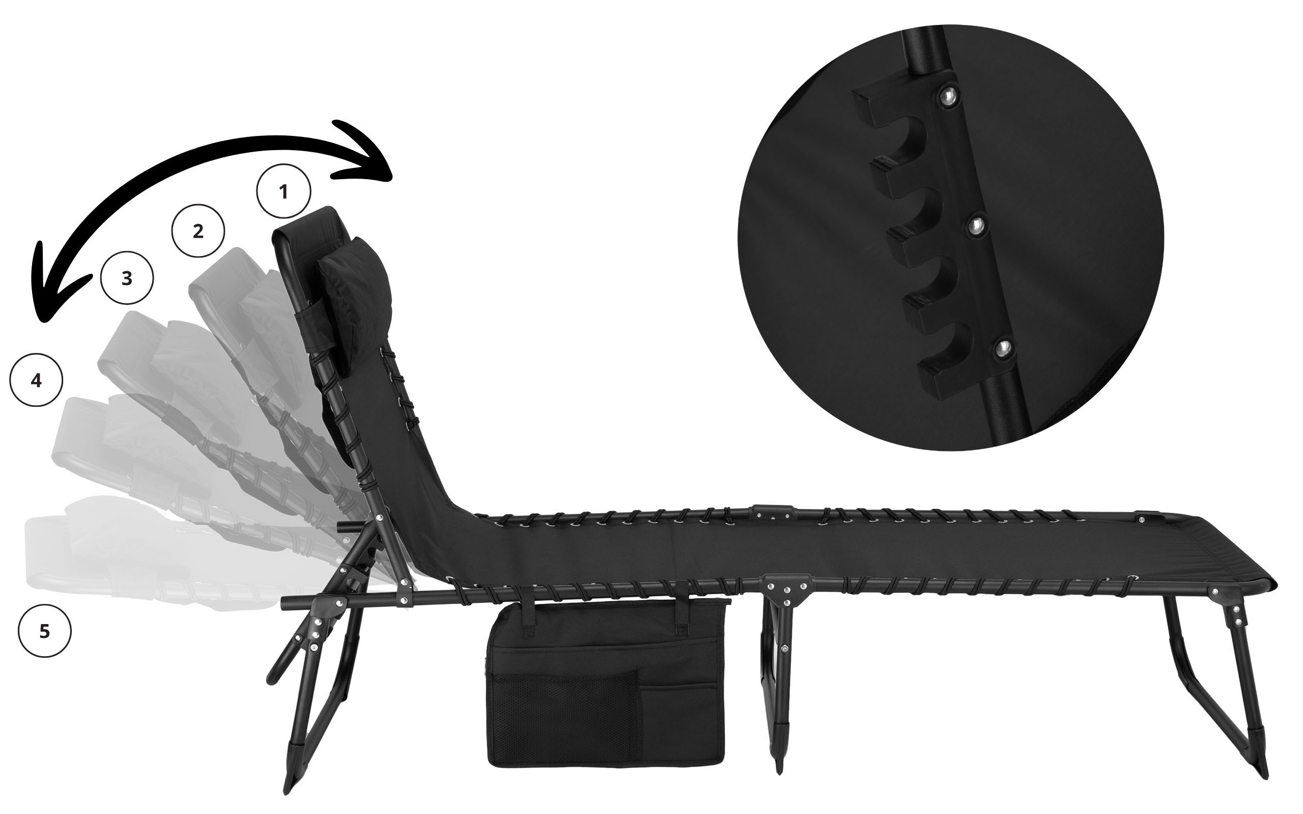 LEŻAK OGRODOWY SKŁADANY FENIKS CZARNY