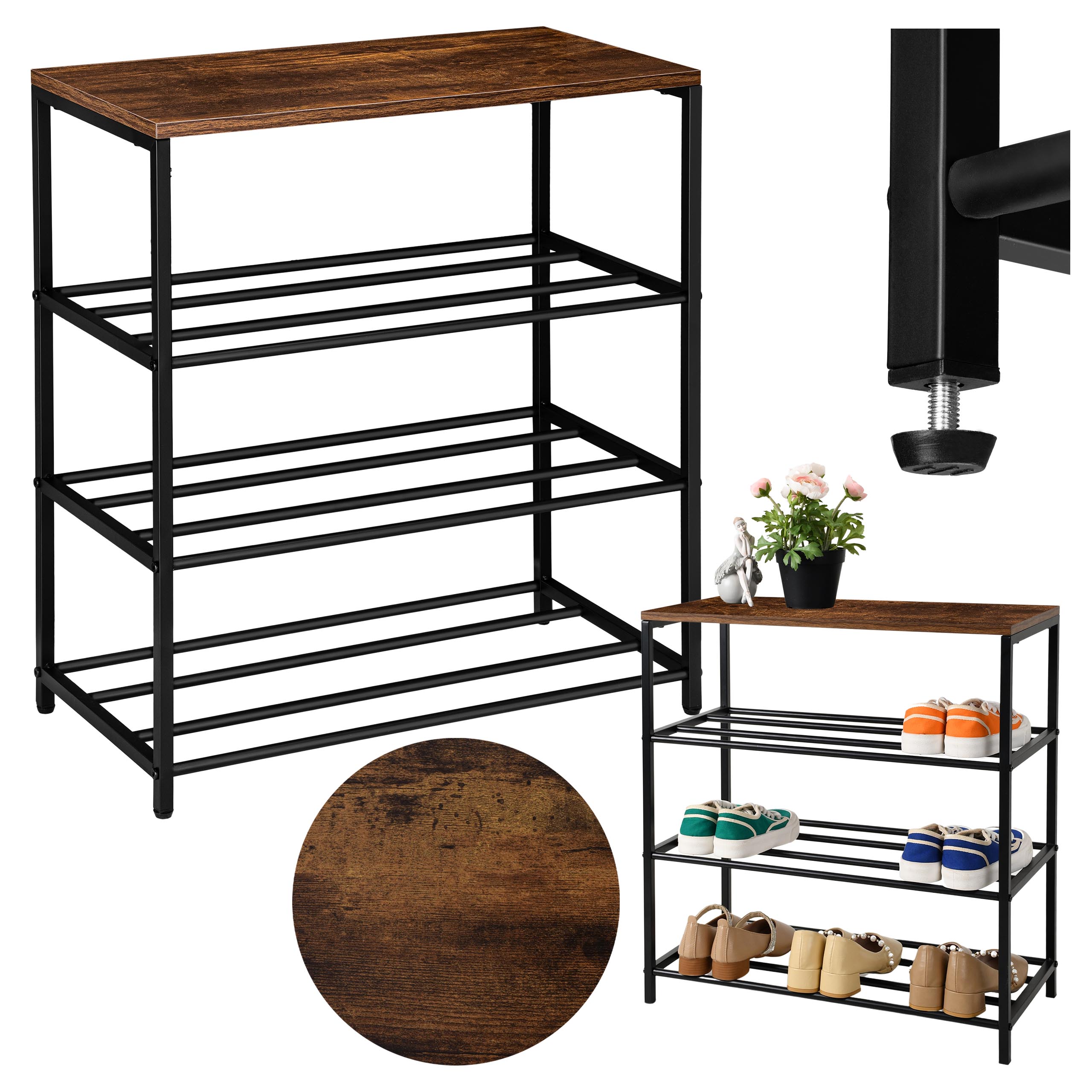 Loftowy stojak na buty Stella 4 poziomy