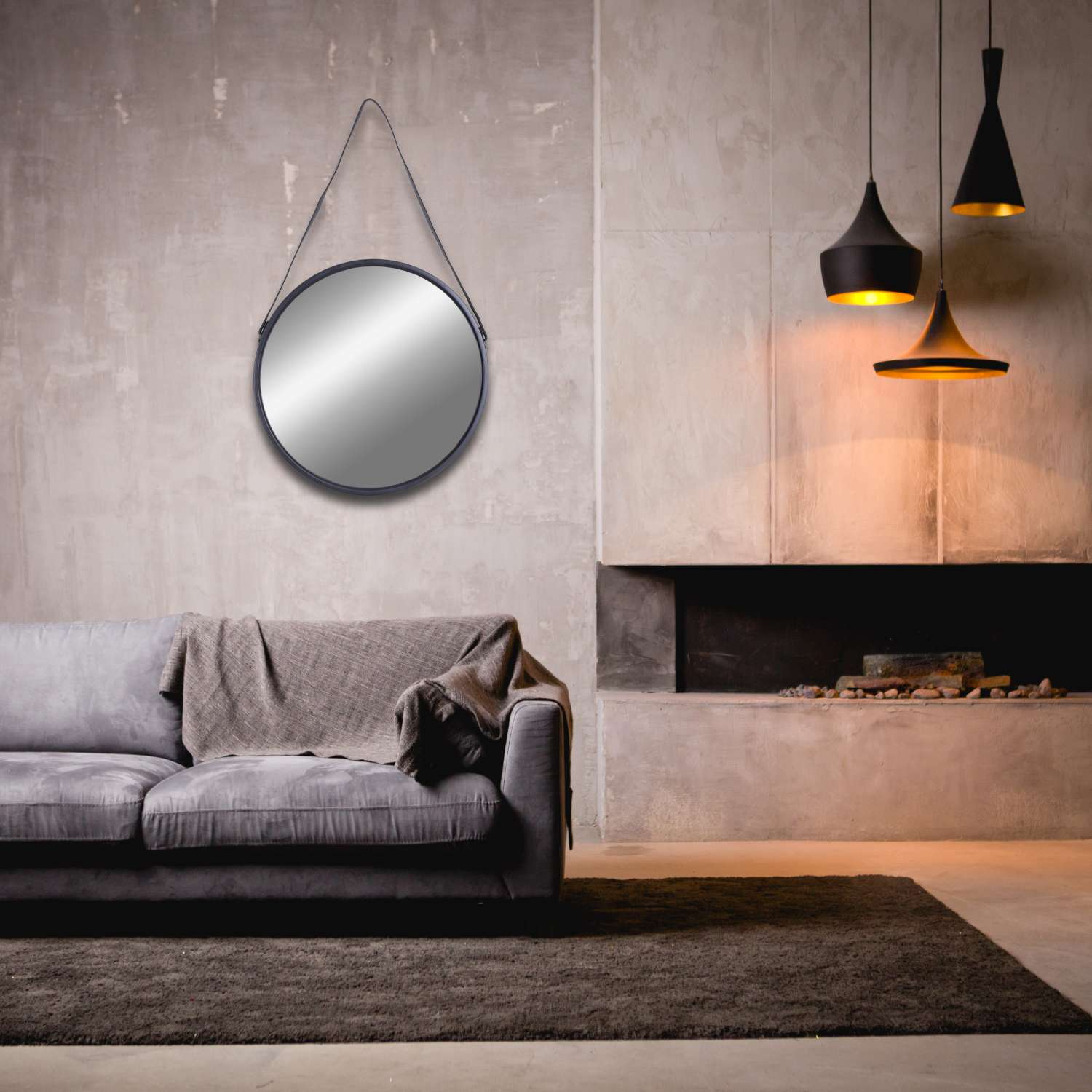 Lustro okrągłe kapitańskie na pasku Mirage 60 cm czarne