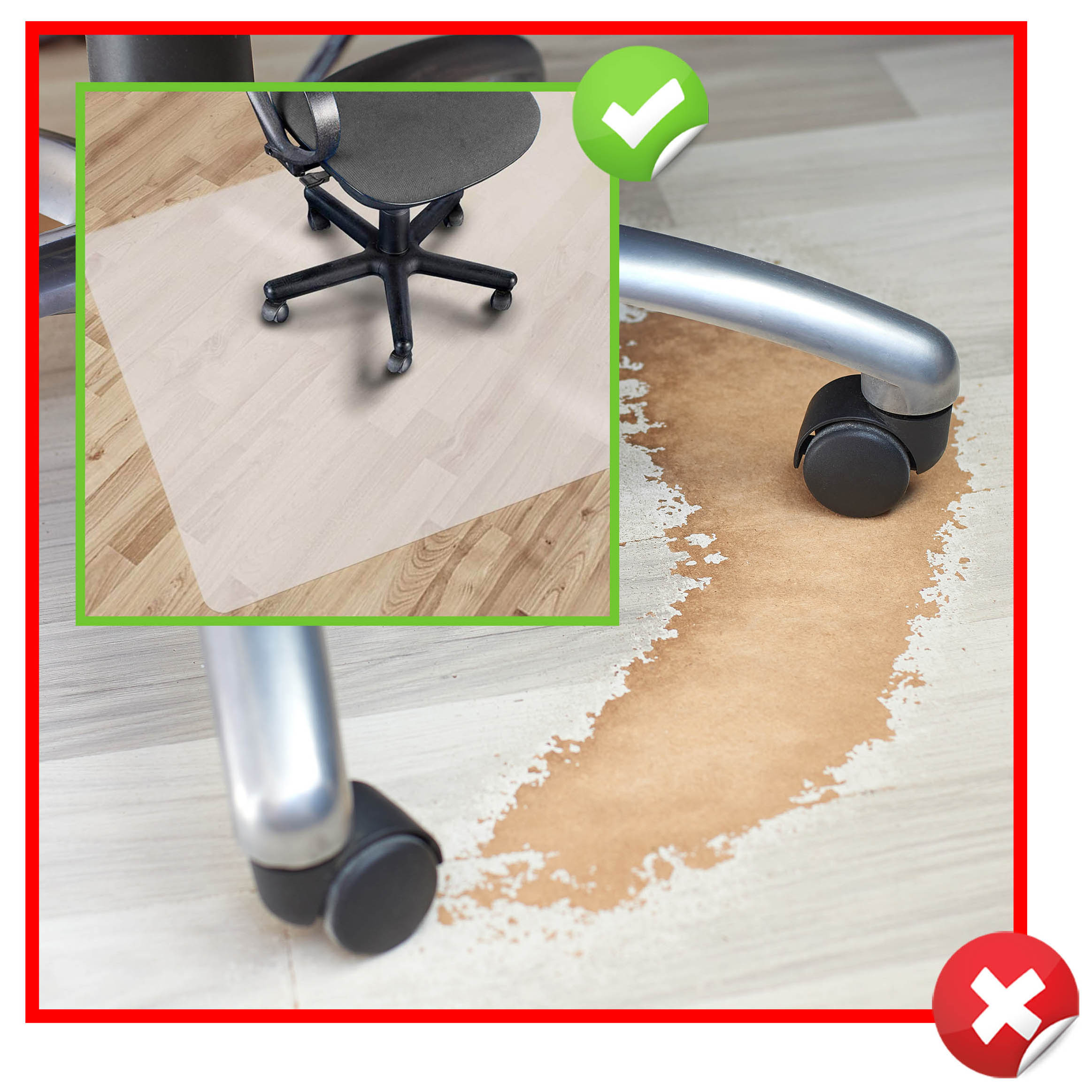 Mata wykonana z wysokiej jakości polipropylenu. Nasze maty to idealna ochrona dla podłóg. Matę możesz wykorzystać pod krzesłem biurowym, meblami, sprzętem do ćwiczeń itp. Maty ochronne pod fotel stosowane są głownie w pomieszczeniach biurowych, domach, szkołach, gdzie powierzchnia podłogi (panele, deski podłogowe, parkiet itp.) jest narażona na przetarcia i zarysowania w wyniku użytkowania na przykład krzeseł obrotowych na kółkach. Idealnie nadaje się do ochrony podłóg. Dzięki zastosowaniu maty ochronnej można wyeksponować ładną podłogę nie narażając jej na zniszczenie.