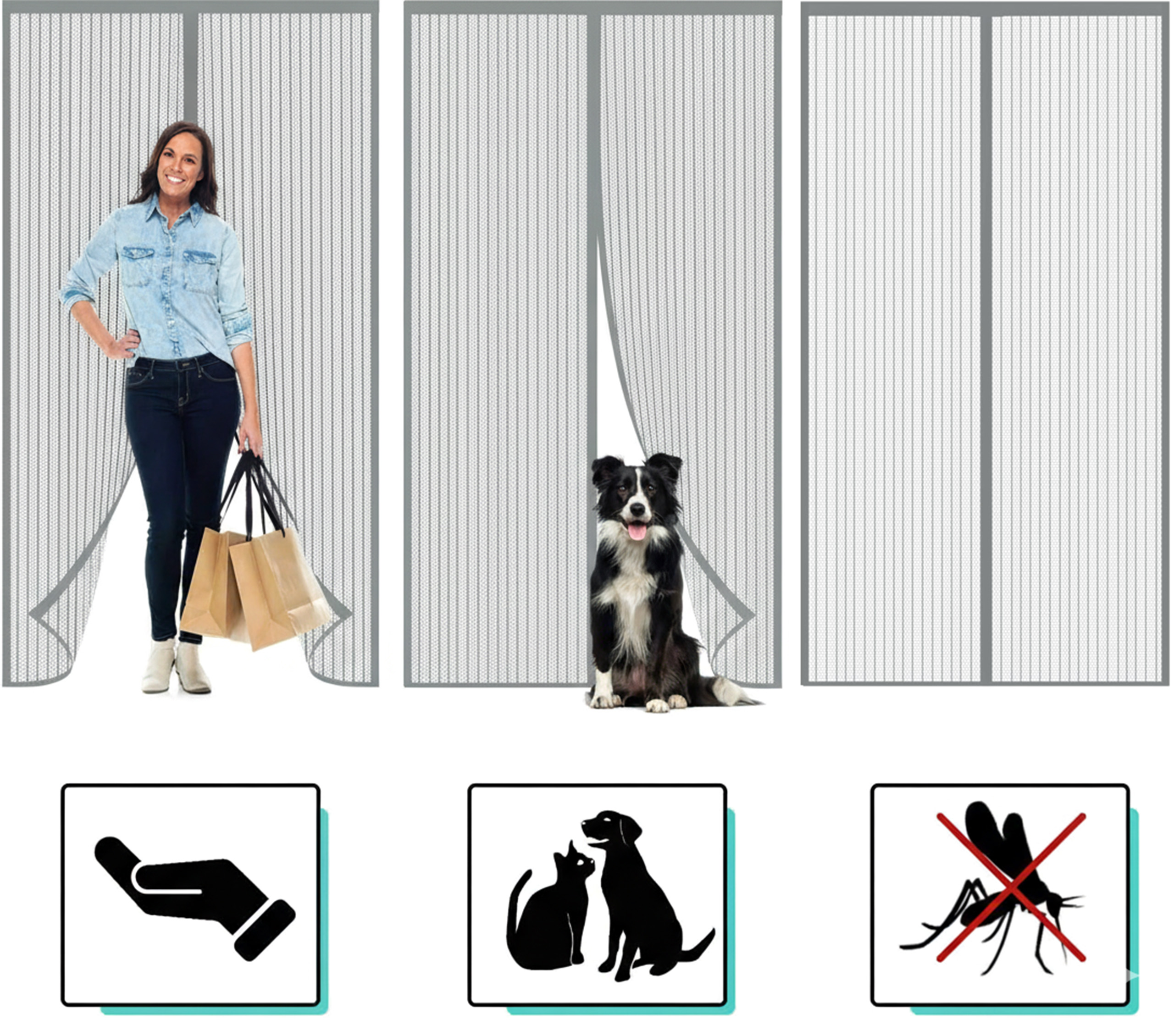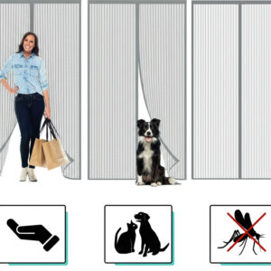 Moskitiera magnetyczna Magic Mesh to skuteczna ochrona przed komarami, muchami i innymi insektami, jednocześnie zapewniająca swobodne przechodzenie dzięki automatycznemu systemowi zamykania. Do zamontowania moskitiery nie potrzebujesz wiercenia i narzędzi. Idealne rozwiązanie dla rodzin z dziećmi i właścicieli zwierząt – Twój pies lub kot może samodzielnie przechodzić przez moskitierę, a mocne magnesy sprawiają, że zamknie się ona automatycznie. Możliwość przycięcia na wymiar gwarantuje dopasowanie do niemal każdych drzwi, a elegancka, drobna siatka nie ogranicza widoczności i doskonale komponuje się z wnętrzem.