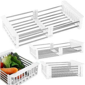 Szukasz praktycznego i uniwersalnego ociekacza? Dobrze trafiłeś! Przed Tobą ociekacz Ordos. Wykonany został z mocnego tworzywa sztucznego i stali nierdzewnej, dzięki czemu jest odporny na korozję i bardzo trwały. Doskonale nada się do suszenia naczyń, warzyw, owoców po umyciu. Teleskopowa konstrukcja pozwala na dopasowanie do pożądanego rozmiaru zlewu. Koszyk jest regulowany w zakresie od 28 cm do 43 cm.