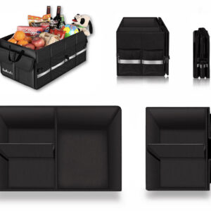 Wismar to doskonały organizer samochodowy zapewniający ład i porządek w każdym bagażniku. Przemyślana konstrukcja pozwala na jego użytkowanie wg własnych potrzeb. Organizer możemy używać w całości, możemy podzielić go na części lub zmniejszyć o połowę. Jest solidnie wykonany z materiałów najwyższej jakości z zachowaniem dbałości o każdy detal. Dzięki materiałowi OXFORD 1680D ma zwiększoną wytrzymałość i odporność na uszkodzenia. Torba samochodowa posiada solidne materiałowe rączki, mocne przeszycia oraz rzepy u spodu podstawy, dzięki czemu jest stabilna i nie przemieszcza się w bagażniku. Oprócz pojemnych wewnętrznych komór Wismar posiada zewnętrzne osiatkowane kieszonki i dwie duże boczne kieszenie na rzep. Dodatkowo w trosce o bezpieczeństwo torba została wyposażona w odblaski. Model po spakowaniu przybiera formę małej walizki i zajmuje bardzo mało miejsca.