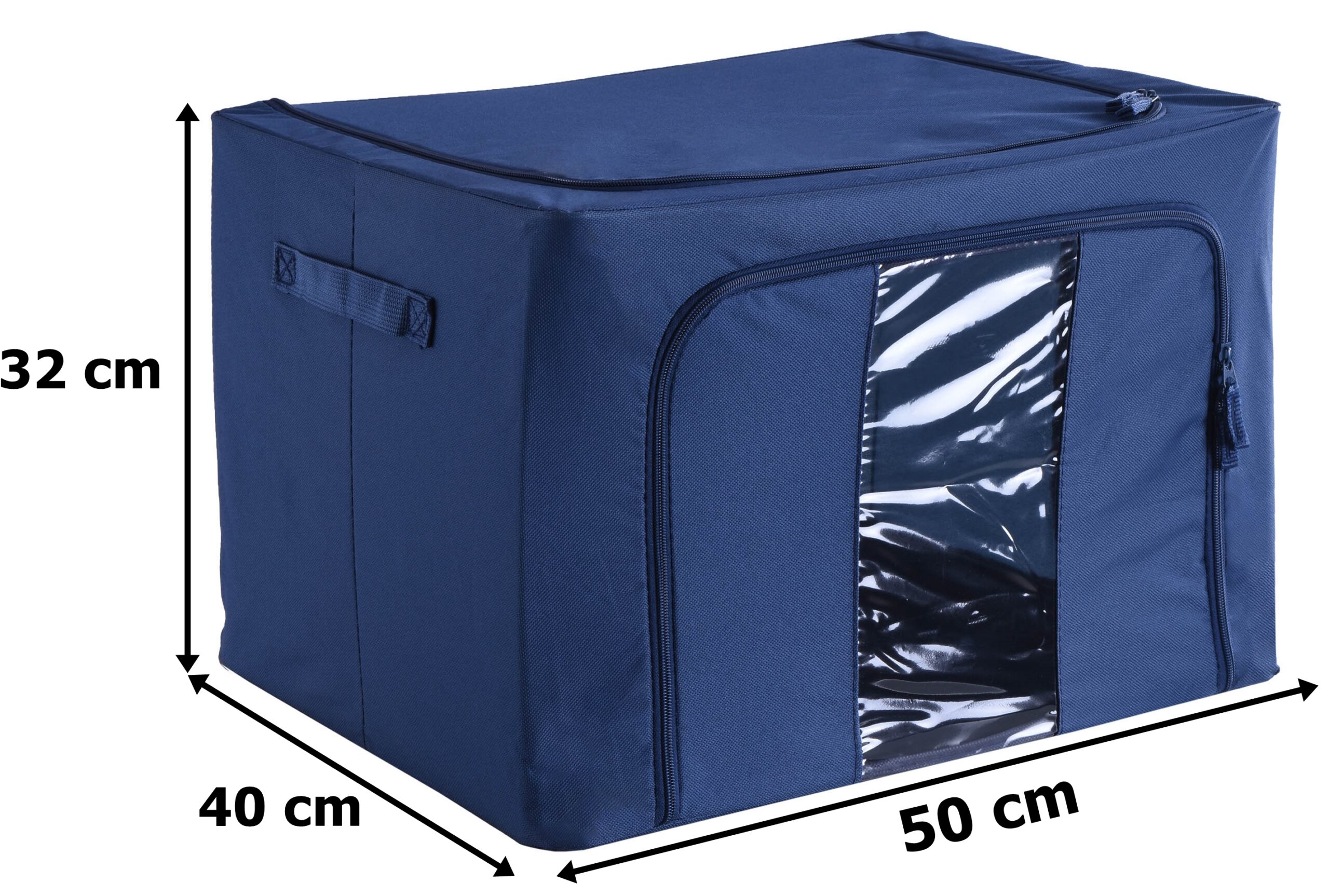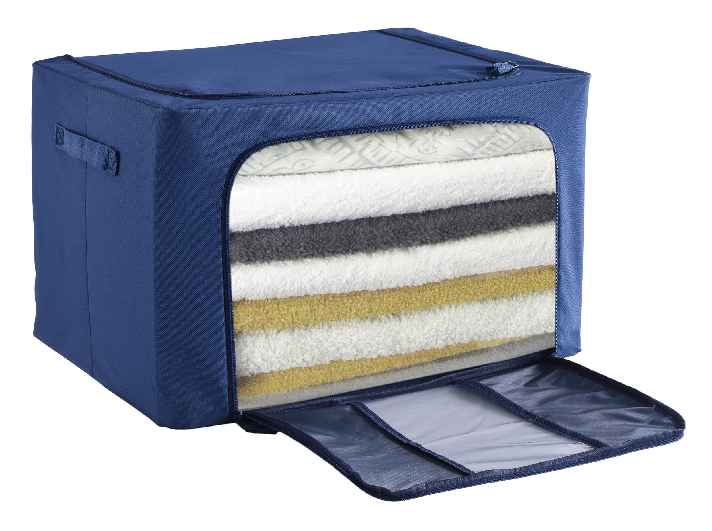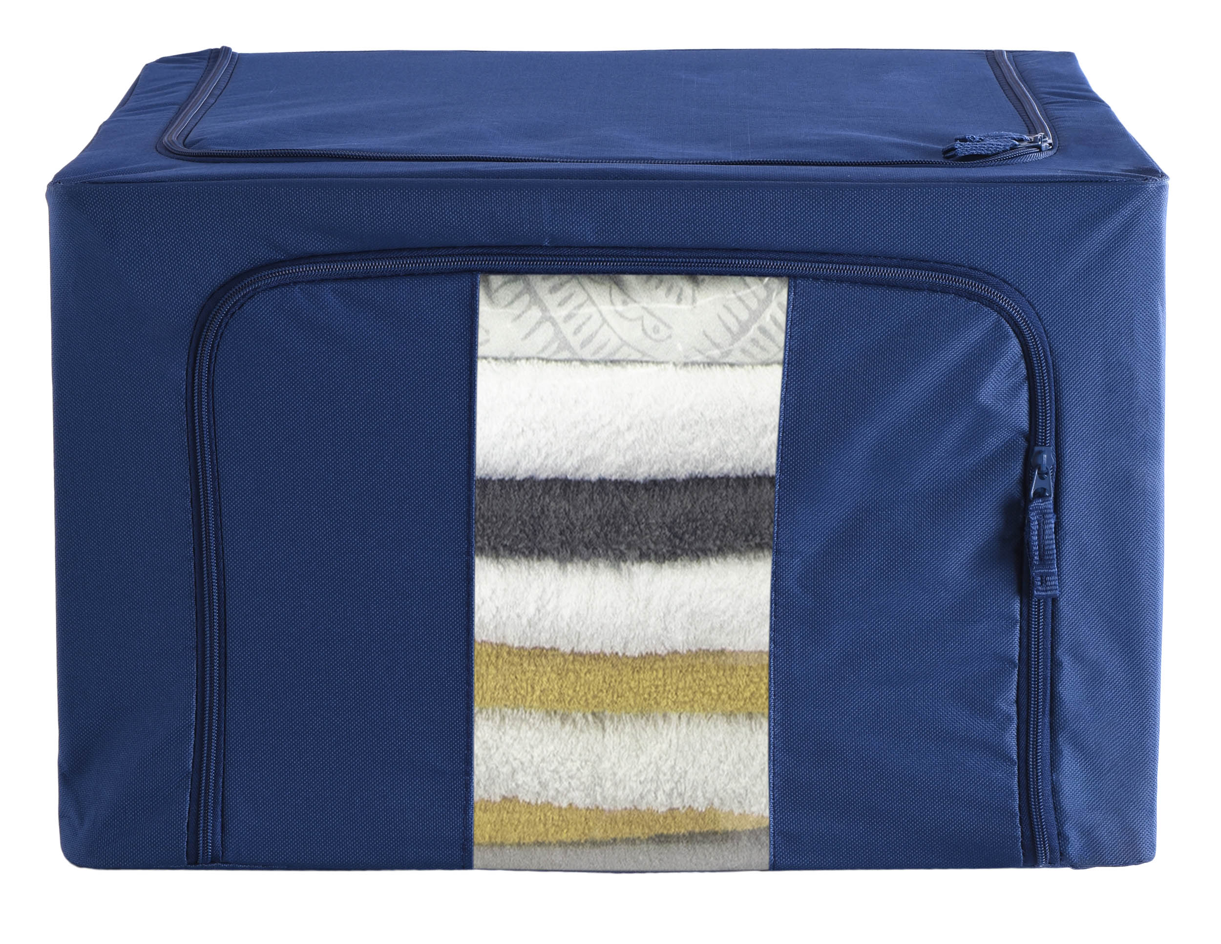 Organizer na pościel Evan to świetne rozwiązanie na zorganizowanie porządku w Twojej garderobie czy szafie. Doskonale sprawdzi się do przechowywania ręczników, pościeli i każdego rodzaju odzieży. Wykonany jest z materiałów najwyższej jakości, z zachowaniem dbałości o każdy detal. Organizer na odzież Evan posiada stalowy, solidny stelaż i usztywnienie na spodzie, dzięki czemu jest stabilny i wytrzymały, a ubrania chronione są przed zagnieceniami. Modułowa konstrukcja pozwala ustawiać kolejne organizery na sobie, dzięki czemu możemy tworzyć pionowe słupki wg własnych upodobań. Dodatkowo przednia ścianka posiada transparentne okienko, dzięki któremu szybko dostrzeżemy rzecz, której szukamy. Torba na ubrania Evan wykonana jest solidnego materiału Oxford 600D, dzięki czemu jest odporna na działanie wilgoci, chroni przed molami, kurzem, brudem i brzydkim zapachem. Evan to doskonały organizer na ubrania. Jest solidnie wykonany z wytrzymałego materiału, posiada stalowy stelaż, mocne zamki błyskawiczne, wygodne rączki do przenoszenia i okienko identyfikujące odzież. To praktyczne i estetyczne rozwiązanie do Twojej szafy. Dzięki dużej pojemności 60 litrów pojemnik jest w stanie zmieścić dużą ilość odzieży, ręczników czy kompletów pościeli.