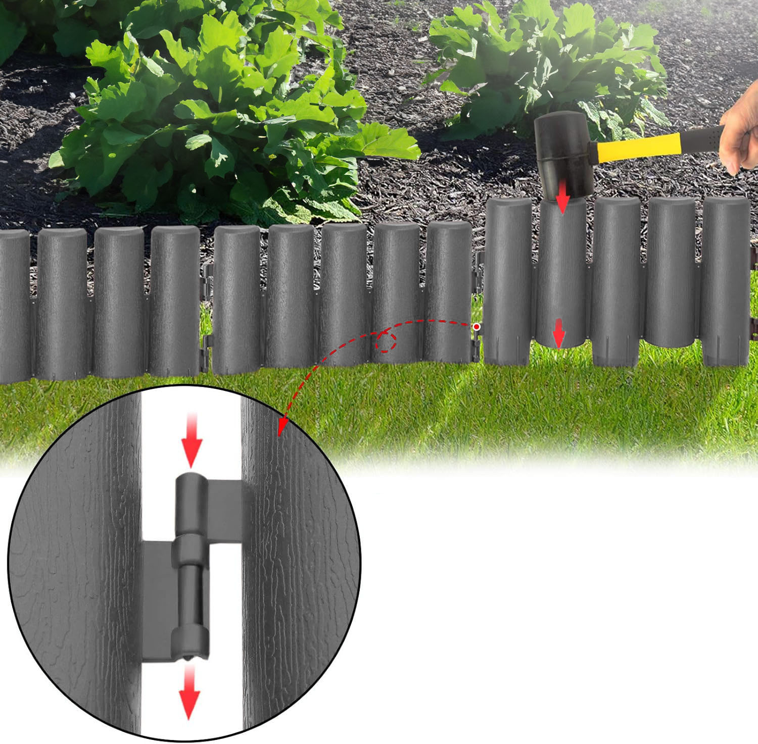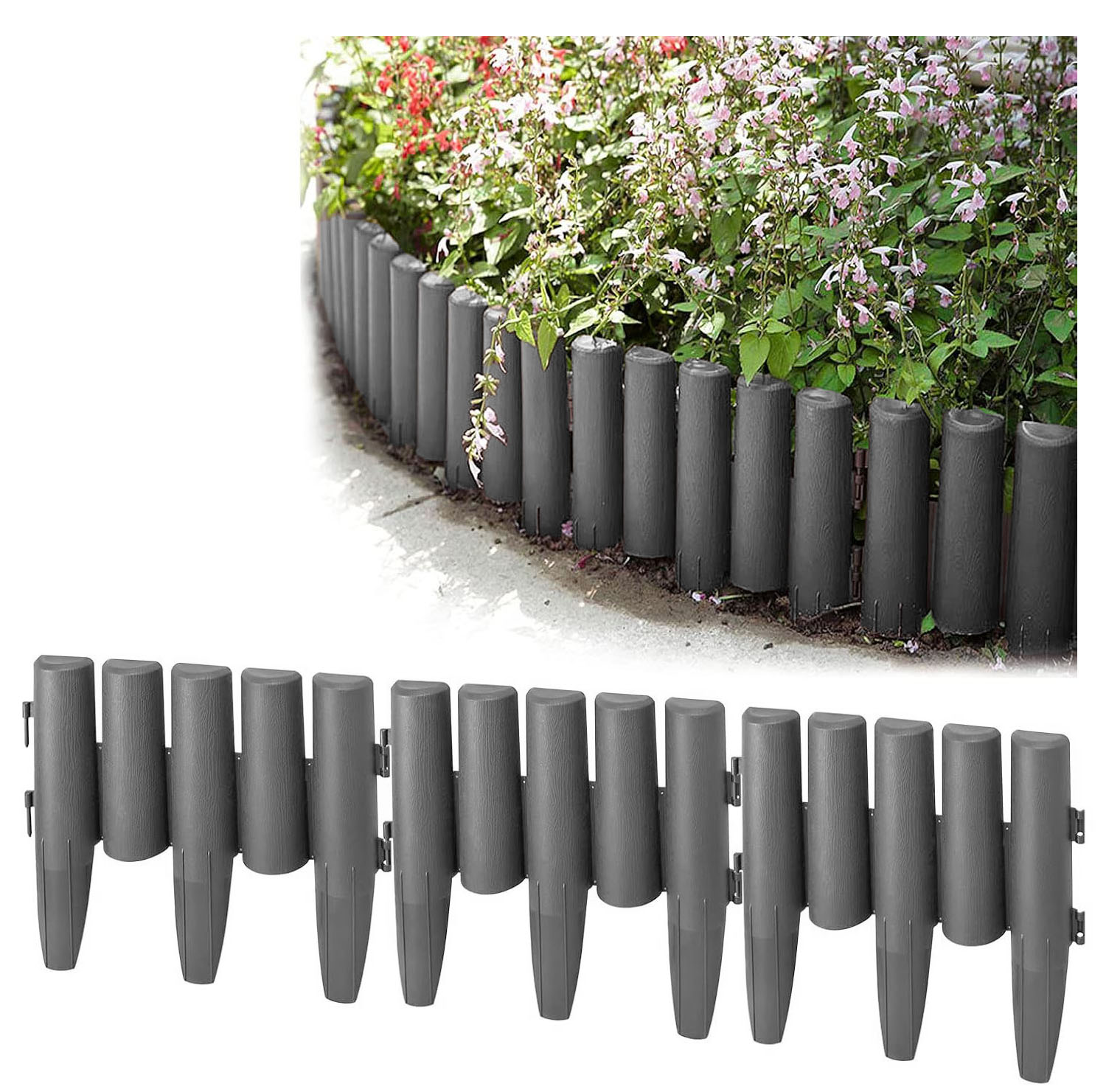 Wykonane z antracytowego tworzywa łączone za pomocą systemowych zapięć oraz wspornikiem, który wbijamy do ziemi