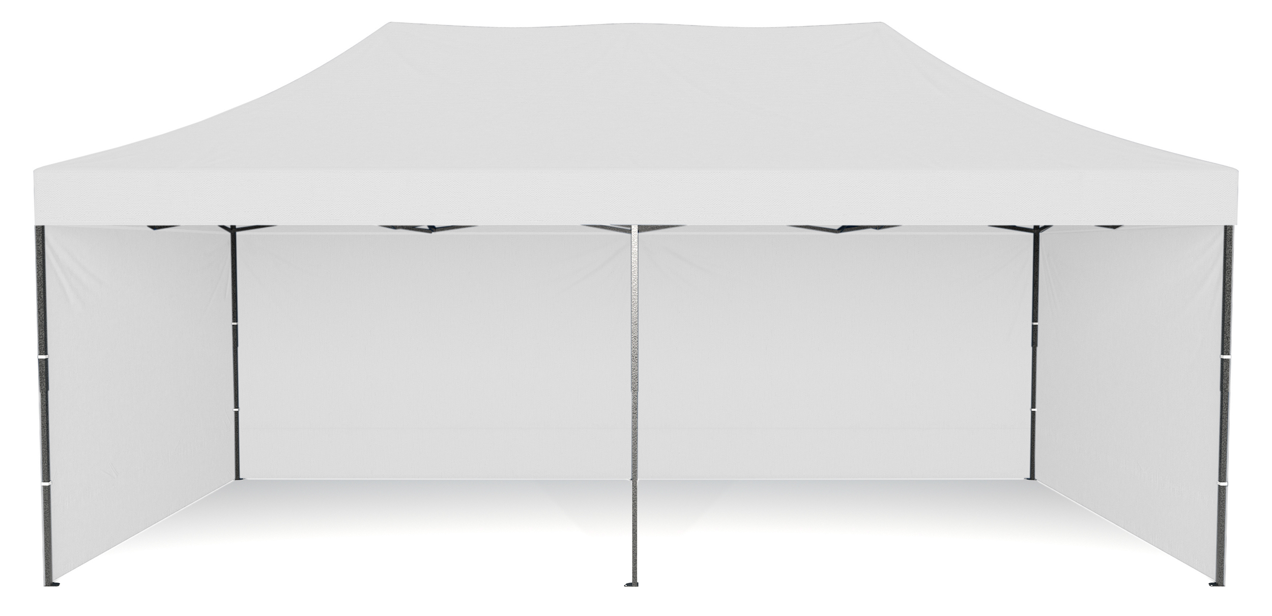 Montaż, demontaż i regulacja składanego pawilonu jest niezwykle łatwa dzięki systemowi zatrzaskowemu. Wystarczy przycisnąć guzik, aby obniżyć konstrukcję. Jeśli chcesz podwyższyć pawilon, wykonaj tę samą czynność jednocześnie podnosząc ruchomy element do góry.