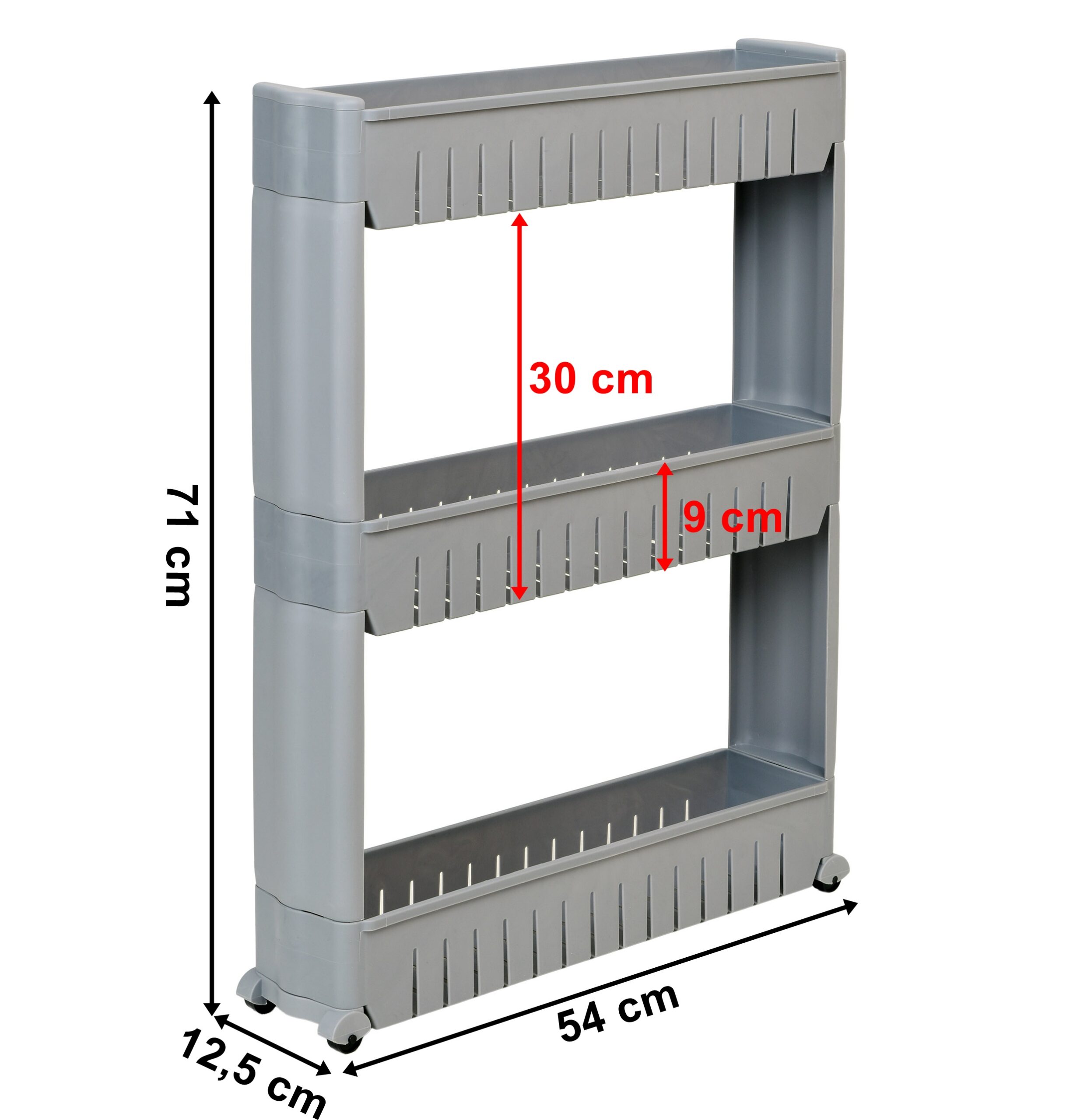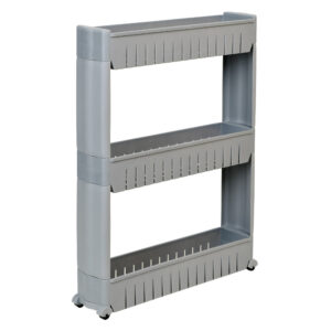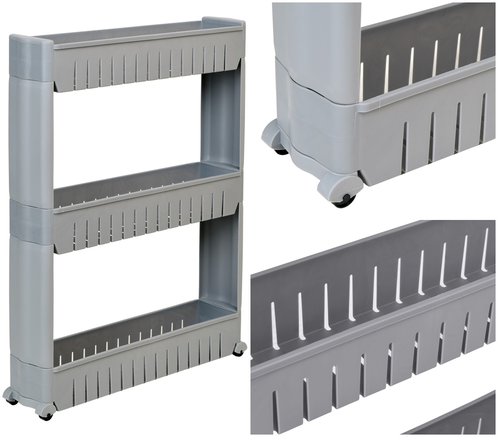 Mobilna szafka idealna do wąskich przestrzeni, takich jak kuchnia czy łazienka. Jej modułowa konstrukcja wykonana z wytrzymałego tworzywa umożliwia łatwe dopasowanie do potrzeb – półki można dodawać lub odejmować. Dzięki kompaktowym wymiarom doskonale sprawdzi się między szafką a lodówką, pralką czy w innych trudno dostępnych miejscach. Regał kuchenny świetnie nadaje się do przechowywania przypraw, akcesoriów kuchennych, kosmetyków, środków czystości i wielu innych niezbędnych rzeczy. Mobilność zapewniają cztery kółka, dzięki którym szafka łazienkowa na kółkach łatwo przemieszcza się tam, gdzie jest potrzebna.
