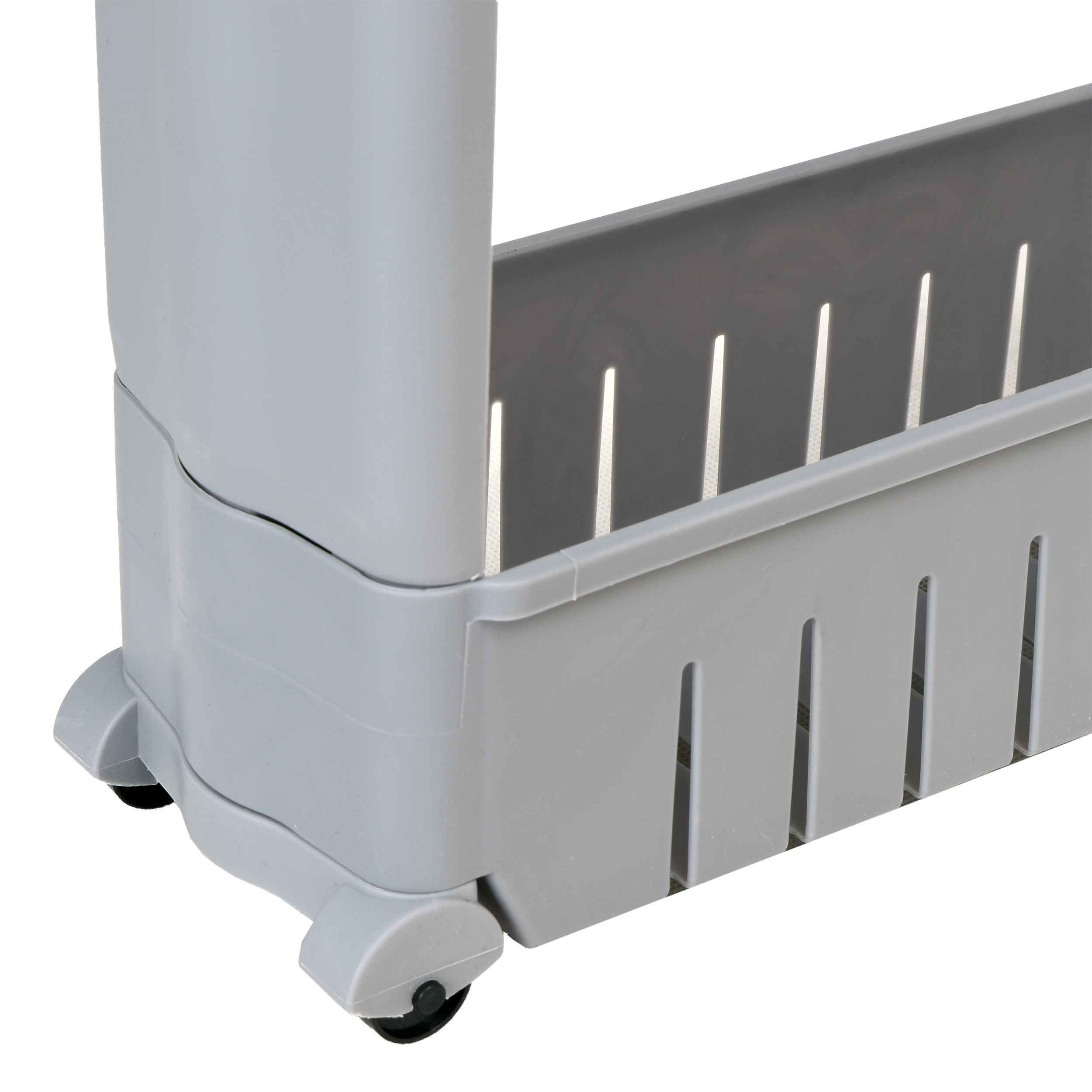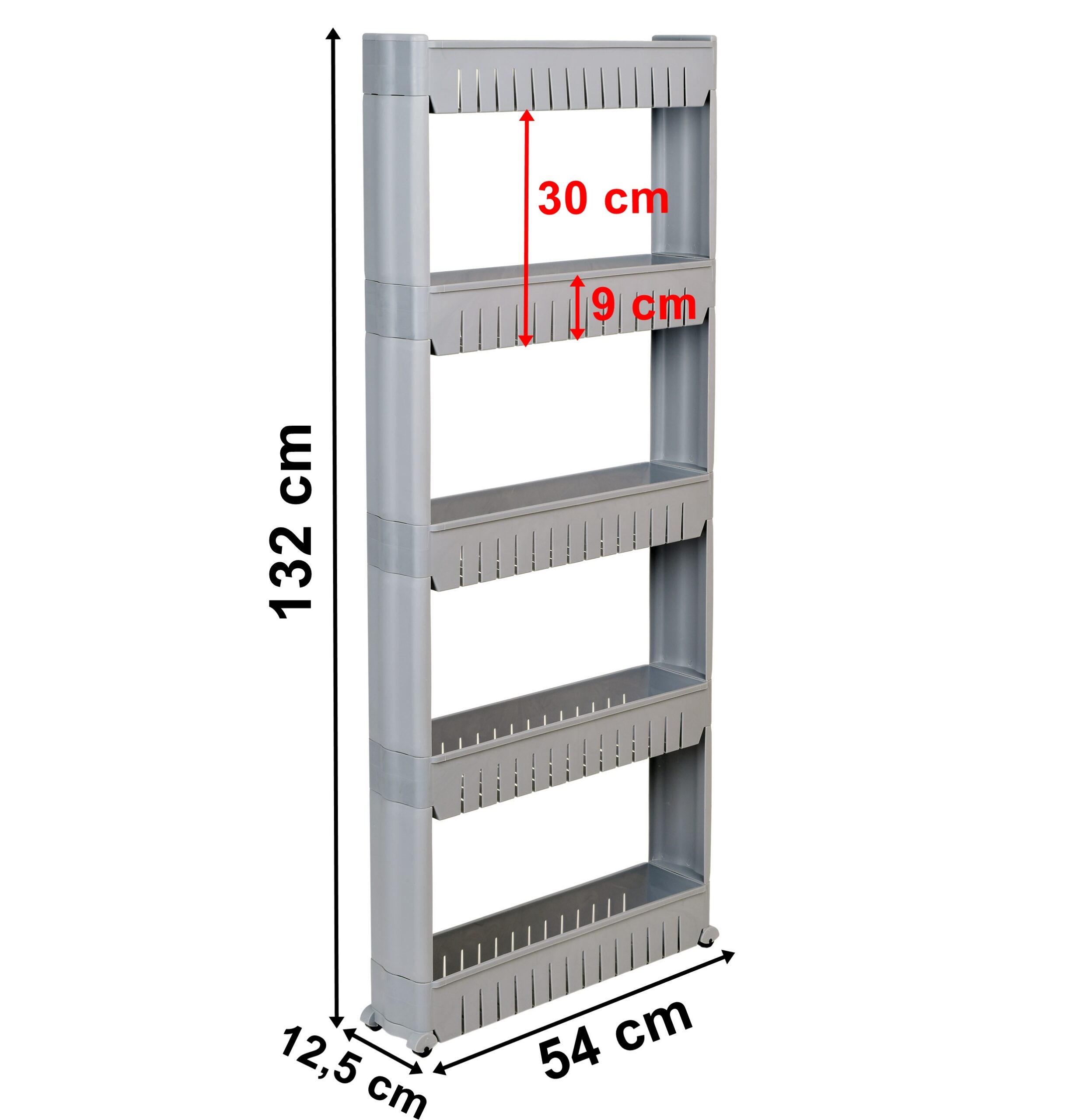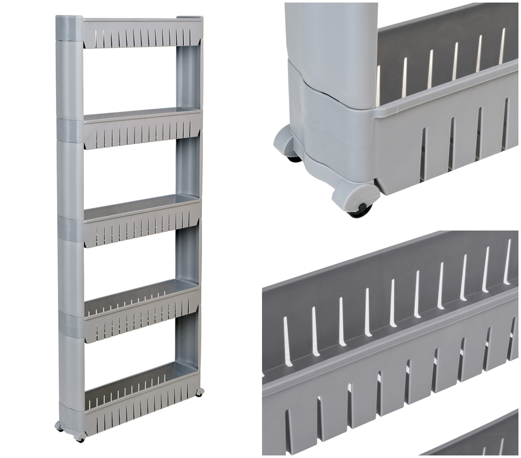 Mobilna szafka idealna do wąskich przestrzeni, takich jak kuchnia czy łazienka. Jej modułowa konstrukcja wykonana z wytrzymałego tworzywa umożliwia łatwe dopasowanie do potrzeb – półki można dodawać lub odejmować. Dzięki kompaktowym wymiarom doskonale sprawdzi się między szafką a lodówką, pralką czy w innych trudno dostępnych miejscach. Regał kuchenny świetnie nadaje się do przechowywania przypraw, akcesoriów kuchennych, kosmetyków, środków czystości i wielu innych niezbędnych rzeczy. Mobilność zapewniają cztery kółka, dzięki którym szafka łazienkowa na kółkach łatwo przemieszcza się tam, gdzie jest potrzebna.