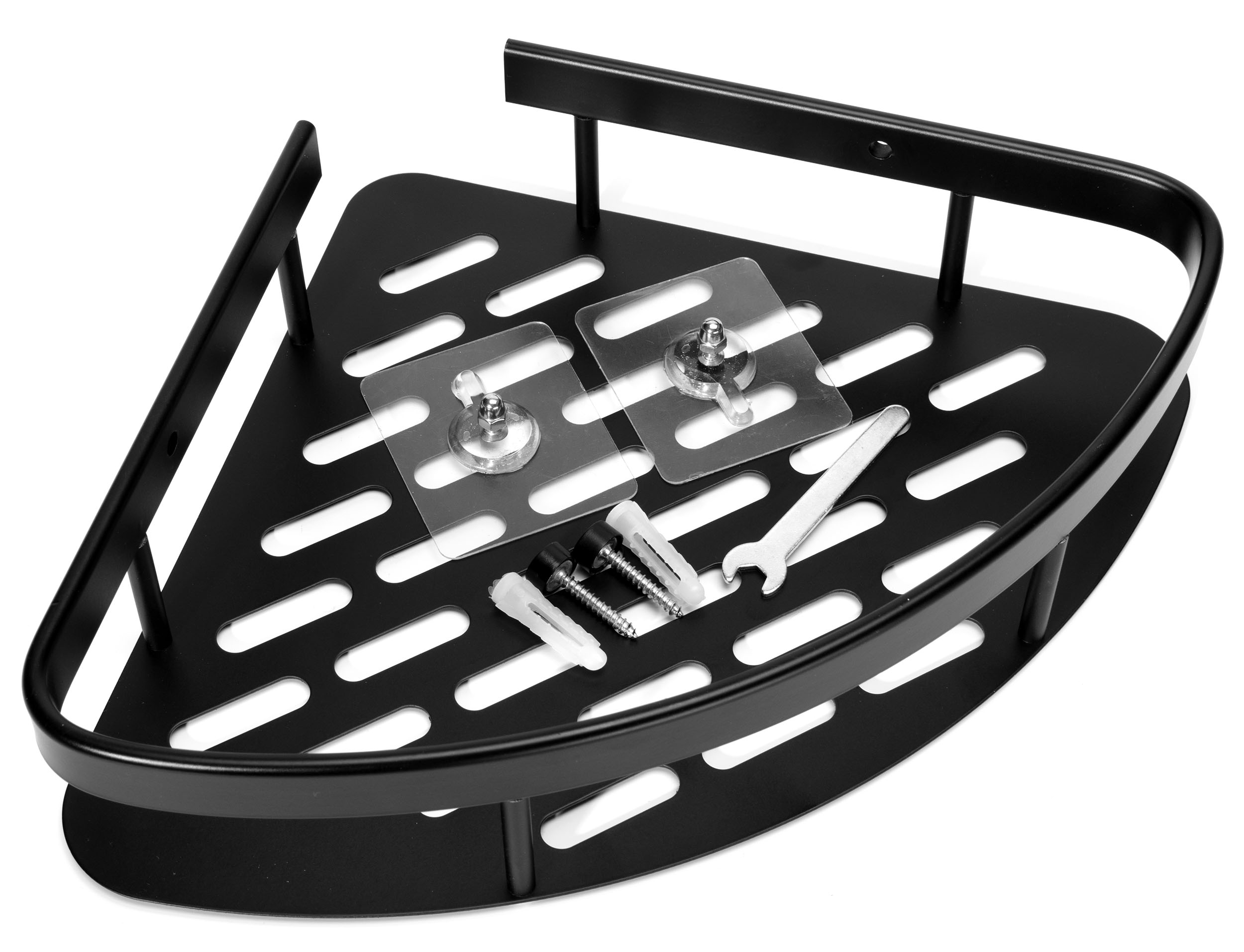 Półka łazienkowa Lusaka, wykonana z wysokiej jakości aluminium w kolorze czarnego matu, łączy w sobie funkcjonalność i nowoczesny design. Idealna do każdej łazienki, zapewnia elegancki sposób na organizację i przechowywanie potrzebnych akcesoriów. Może być łatwo zamontowana za pomocą dołączonych mocnych naklejek lub kołków.