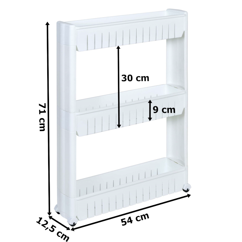 Mobilna szafka idealna do wąskich przestrzeni, takich jak kuchnia czy łazienka. Jej modułowa konstrukcja wykonana z wytrzymałego tworzywa umożliwia łatwe dopasowanie do potrzeb – półki można dodawać lub odejmować. Dzięki kompaktowym wymiarom doskonale sprawdzi się między szafką a lodówką, pralką czy w innych trudno dostępnych miejscach. Regał kuchenny świetnie nadaje się do przechowywania przypraw, akcesoriów kuchennych, kosmetyków, środków czystości i wielu innych niezbędnych rzeczy. Mobilność zapewniają cztery kółka, dzięki którym szafka łazienkowa na kółkach łatwo przemieszcza się tam, gdzie jest potrzebna.