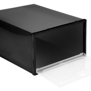 Przezroczyste okienko: Ułatwia szybkie i bezproblemowe odnalezienie odpowiedniej pary butów, eliminując konieczność otwierania każdego pudełka z osobna.